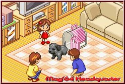 Am Anfang muß der Hund seinen Namen lernen. Also ruft man ihn mit der A-Taste. Entweder erscheint nun ein Ausrufezeichen über dem Hund dafür das es verstanden hat oder viele kleine Fragezeichen. Je nachdem was erscheint könnt Ihr den Hund loben oder tadeln, oder z.b. mit Leckerlis verwöhnen. Das gleiche bei den Kommandos. Jedes Kommando hat im Welpenmenu eine Art Balkenanzeige, die man stetig füllt. Über mehrere Tage müht man sich so mit einem Kommando ab, ehe sich die Anzeige langsam füllt. Irgendwann beherrscht der Hund das Kommando, das er nun auch nicht wieder vergißt. So geht man dies mit allen Kommandos an. Manche Kommandos sind gar erst möglich wenn ein bestimmtes vorher erlernt wurde. So könnt Ihr dem Hund z.b. "Pfote" erst beibringen wenn er "Sitz" gelernt hat. Damit sich der Hund überhaupt mit den Kommandos beschäftigt müßt Ihr euch um ihn kümmern. Hier bietet das Spiel wie alle in dieser Rubrik Möglichkeiten. Angefangen vom Futter über Hygiene Möglichkeiten bis hin zu Spielzeug. Auch hier zeigt sich der gesamte Umfang erst später im Spiel. So vergeht z.b. 1 Woche ehe Ihr soweit seid Gassi zu gehen. Logischerweise kann man auch dann erst den Laden besuchen um neue Sachen zu holen. Man darf also auch hier die Zügel nicht schleifen lassen. Mit dem Vorsatz es geht schon irgendwie darf man selbst ein Spiel wie Dogz nicht anfangen. Hier spielt auch mit hinein das Ihr als menschlicher Charakter mehr machen könnt als gedacht. Neben der Hundeerziehung müßt Ihr den Haushalt reinigen und bekommt dafür entsprechende Geräte. Überall nimmt man den Hund mit und vertieft das ganze dadurch ebenfalls. Ihr könnt Schränke benutzen, Minispiele aus der eigenen Spielzeugkiste spielen oder z.b. die Musikanlage einschalten. Nicht umsonst gemacht, kann man doch so dem Spiel mehrere Musiken spendieren und muß nicht immer den gleichen Einheitssong hören wie bei Catz. Ihr könnt Bücher lesen und solltet dies auch tun, da dort viele Tipps für den angehenden Hundehalter stehen.