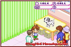 Beginnt Ihr ein neues Spiel wird die Geschichte der menschlichen Hauptperson nochmal in niedlich gemachter Spielgrafik erzählt. Dazu werdet Ihr zunächst nach Namen und Geschlecht gefragt das Ihr annehmen möchtet. Im Verlauf des kleinen Vorspanns führt euch die Geschichte mal nicht in ein Tierheim, sondern einen Händler der Welpen verkauft. Hier dürft Ihr euch einen der im Spiel möglichen 18 Racker aussuchen. Ebenfalls hier gibt es eine Abfrage ob euer künftiger Hund eher ruhig oder verspielt, sowie groß oder klein sein soll. Danach könnt Ihr nun einen auswählen und bekommt diesen praktisch mit nach Hause. Von nun an liegt es an euch was aus dem kleinen Racker wird und ob Ihr in der Lage seid diesen zu Erziehen. Im Gegensatz zu Catz dürft Ihr hier nun 3 Wochen Spielzeit dafür verbrauchen. Was natürlich vor allem daran liegt das man mit dem Thema Hunde viel mehr machen kann. Allein der Inhalt mit Kommandos fehlt bei einem Katzenspiel ja völlig. Nach diesen 3 Wochen werdet Ihr bewertet und bekommt den Hund in die Hall of Fame oder eben auch nicht. Wer sich nicht kümmert kann seinen Hund auch verlieren. Anders als beim großen DS Bruder spielt hier die Zeit wieder eine untergeordnete Rolle. Das typische Anschalten des Gerätes jeden Tag durch die interne Uhr entfällt hier und man kümmert sich eben nur dann um den Hund wenn will und den GBA anschaltet. Tränenreiche Abende wie bei Nintendogs, wo mangels Zeit der Hund auch mal abgehauen ist wird man hier nicht erleben. Die 3 Wochen Spielzeit für ein Welpen vergehen deshalb auch nicht in Echtzeit. Viel mehr sind es wieder alle möglichen Aktionen die der Spieler ausführt, welche diese in kleinen Sprüngen vergehen lassen. Dabei spielt immer eine feste Zeitregel mit. Früh habt Ihr nie viel Zeit weil Ihr in die Schule müßt und nur der Nachmittag bis abends 21:00 Uhr steht euch für alle möglichen Aktionen zur Verfügung.