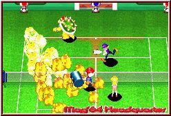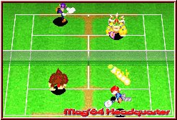 Der Multiplayer erlaubt es euch mit 3 menschlichen Spielern loszulegen. Dabei unterstützt Mario Power Tennis neben dem Link Kabel auch den Wireless Adapter um auch auf dem GBA Kabellos zu spielen. Schade das es keine 1-Modul Variante gibt und so alle Mitspieler ein Spiel im GBA haben müssen. Ist das der Fall könnt Ihr euch nun wahlweise im 1-1 oder im Doppel vergnügen. Schaltet man die Powerschläge ab, kann man durch die menschliche KI eine Menge Spaß haben. Ihr könnt neben Charakteren auch die Plätze frei wählen, inklusive Peach Dome und natürlich die Ziele in Sachen Sätzen und Spiele einstellen.