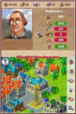 Dazu kommt das Anno 1701 auch grafisch ein sehr gelungenes Spiel geworden ist. Beide Sichtweisen sind technisch hervorragend umgesetzt und bestechen durch gute Übersicht und viele Details. Vor allem wenn man in der Nahansicht auf das Geschehen zoomt ein Augenschmauß für DS Verhältnisse. Ob nun der Holzfäller den man über die Straßen samt Wagen fahren sieht bis hin zu den immer detaillierter werdenden Häusern in der Enticklung der einzelnen Zivi Stufen. Alles mögliche ist animiert und farbenfroh. Da laufen Kühe und Schafe über die Farmen oder es raucht aus der Eisenschmelze. So viele Kleinigkeiten die einfach sehr liebenswert gemacht sind. Das es dabei weder ruckelt noch sonstig technisch irgendwie Fehler hat erstaunt sehr. Das einzige was man sich vor allem bei vollbebauten Gegenden wünscht ist das Drehen des Blickwinkels. Gerade um auf engem Raum vielleicht ein Straßenupgrade zu verlegen nicht immer einfach. Aber sonst ist das Spiel grafisch ebenfalls eine echte Granate.