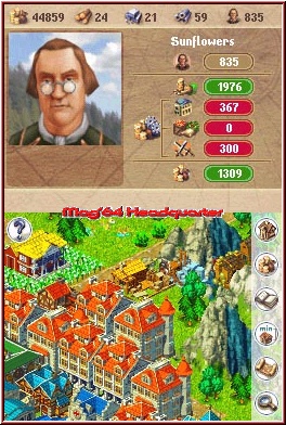 Auch hier ist das Spiel komplett über den Touch Screen zu steuern. Tippt Ihr auf die Gegend könnt Ihr durch Ziehen oder Wischen die Gegend erkunden. Geht angenehm einfach und vor allem flott über die Bühne. So sucht man sich also als erstes einen geeigneten Platz für den Holzfäller. Logisch das dieser nicht auf einer Wiese stehen sollte, sondern möglichst in einem Waldgebiet. Stichwort Siedler müßt Ihr euch hier nicht um einen Förster kümmern. Einmal Wald immer Wald und damit auch Nachschub in Sachen Holz. Kaum steht das Gebäude greifen weitere wichtige Dinge im Spielsystem. Zum einen könnt Ihr den Holzfäller wie später alle anderen Geböude anklicken und erfahrt einiges darüber. Zum einen über die Produktivität und ob es sich lohnt diesen am gewählten Platz zu belassen. Denn noch viel wichtiger ist die Tatsache das alle Gebäude etwas kosten. Nicht nur in der einfachen Anschaffung was Geld und Ressourcen angeht, sondern viel wichtiger im Unterhalt. Ein Holzfäller kostet zwar kaum etwas im Unterhalt, später bei voll entwickelter Kolonie und allen anderen Gebäuden ein ganz wichtiger Faktor. Auch hier ein großer Unterschied zum Siedler System. Nun gut der Holzfäller steht, Holz kommt trotzdem noch nicht in das Kontor. Dazu erscheint nun auch noch ein Ausrufezeichen über dem Gebäude. Das bedeutet immer das dort ein Problem vorherrscht. Neben Infos die nach dem Anklicken im Top Screen auftauchen erscheinen auch Symbole um das Gebäude. Teils noch abgedunkelt gehört da auch ein Fragezeichen dazu. Hier könnt Ihr sehen das irgendwas nicht stimmig ist. Hier ist es die fehlende Anbindung an das Kontor. Es muß also zwingend eine Straße her welche den Holzfäller und das Kontor verbindet. Auch das gilt das gesamte Spiel über und einfach ein Gebäude irgendwo in die Pampa zu setzen hat nur bei wenigen Sinn. Hier ähnelt das ganze also mehr dem Sim City Prinzip. Ohne Infrastruktur geht nichts in Anno 1701.