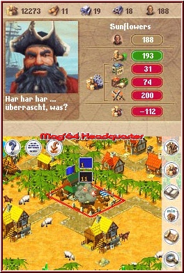 Sobald Ihr euch via Schiff auch um andere Inseln kümmern könnt, spielt der nächste Aspekt hinein. Vielleicht seid Ihr ja nicht der einzige im Universum und Piraten oder euer Gegenspieler im Spiel mißbilligt euren wirtschaftlichen Aufschwung. Um sich bei euch Gehör zu verschaffen will er das ganze mittels Waffengewalt lösen. Willkommen im ebenfalls enthaltenen Militäraspekt. Auch hier wieder eingeteilt in Verteidigung und Angriff. So habt Ihr also die Möglichkeit Kasernen zu bauen, welche Soldaten generieren. Bietet eine Kaserne z.b. die Möglichkeit 20 Soldaten auszubilden, könnt Ihr diese nun mehrfach verteilen. Zum einen gibt es jetzt erneut hinzukommende Gebäude wie Wachtürme. Ebenfalls kann man alle Kontor und Markthäuser mit Soldaten füllen. Klickt man das Gebäude an gibt man an wieviele Soldaten hier stationiert werden sollen. Sind diese dort angekommen stehen sie euch zur Verfügung. Greift man euch z.b. an, errichten die Gegner wie auch Ihr wenn Ihr eurerseits eine Insel angereift einen Vorposten. Solche Orte wie auch vom Gegner eingenommene Gebäude kann man direkt angreifen. Man gibt die Anzahl der Soldaten an und läßt es drauf ankommen. Man kann reagieren und Nachschub holen, die eigenen Soldaten aber auch rein zur Verteidigung abstellen. Auch hier sind die Möglichkeiten immens. Und alles steht und fällt mit der Entwicklung der Kolonie. Wenn Ihr eh immer gerade so am Bankrott vorbei schlittert und dann noch solche Probleme dazukommen habt Ihr vielleicht kein Geld mehr um zu reagieren. Kommt Ihr einmal in den Minusbereich gibt es auch in Anno einen Dispo um kurzfristig zu reagieren. Alternativ kann man Gebäude auch deaktivieren, was weit weniger Unterhalt kostet. Dafür fehlen diese Produkte nun vielleicht wieder um die Bevölkerung bei Laune zu halten und schon sinken wieder die Steuern. Und und und.......