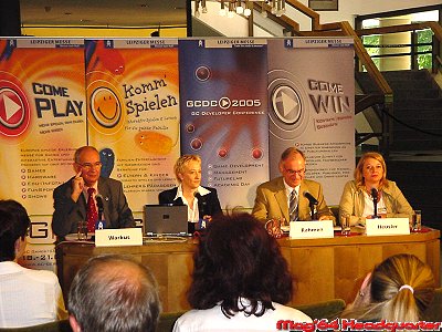 Wie immer begann das ganze mit einem Rückblick auf die erfolgreiche Ausgabe 2004 und einem kleinen Resume über die letzten Jahre. Nicht ohne Stolz kann die Messe dabei die anfangs vielerorts gezeigten Zweifel ausräumen, die Messe könne eventuell scheitern. Zugegen waren bei diesen Ansprachen die Projektleiterin der Games Convention - Frau Angela Schierholz, Herr Josef Rahmen – Geschäftsführer der Leipziger Messe Gmbh sowie der Medien Pädagoge Herr Hartmut Warkus. Moderiert wurde die Veranstaltung von der Pressereferentin der Games Convention Frau Susanne Heusler. Begleitet von diversen Sheets und Statistiken wurden vor allem reichlich Fakten über den bevorstehenden Event veröffentlicht. Nicht dabei war in diesem Jahr der Vertreter des VUD, der sich mittlerweile ja aufgelöst hat. Hier steht die Messe mit einer neuen Organisation in Verhandlungen. Kümmern wir uns zunächst um Zahlenspiele. Teilweise bekannt waren dennoch einige überraschende Zahlen dabei und auch ein paar Neuerungen für die Besucher der Messe waren zu erfahren. Die Messe selber kann zunächst wieder mit einigen neuen Rekorden aufwarten. Verglichen mit der letzten Ausgabe der Messe sind viele wichtige Eckdaten teils nochmals immens gestiegen. Das beginnt schon beim Umfang der Messe. Wurden im letzten Jahr teilweise bis zu 4 Hallen plus dem Business Center mit 53.000 Quadratmetern belegt, so dürfen sich die Spieler in diesem Jahr auf komplett gefüllte 4 Hallen und 80.000 Quadratmeter freuen. Multiplattform Magazine sind da nicht zu beneiden. ;-) Dem folgend stieg natürlich auch die Ausstellerzahl von 230 im letzten Jahr auf 270 im Jahr 2005. Neben neuen Austellern aus Spieleverwandten Branchen dürften die Cracks vor allem über den eigenen Auftritt von Sega oder Midway erfreut sein. Gerade Sega hat ja für unsere Plattformen in diesem Jahr doch einiges zu bieten.