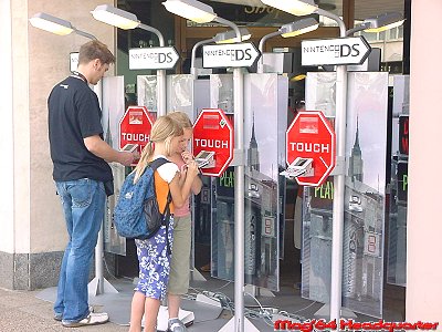 Schön zu sehen wie z.b. Nintendogs bei vielen Besuchern ankam. Nach anfänglich skeptischen Blicken was das denn hier sei verweilten viele recht lange an den Stationen und schauten sich oft um ob sie nicht jemand beobachtet beim streicheln des Touch Screens. ;-) Neben den Zelda Stationen, die mit der Zeit nicht mehr auf Besucher warten mußten waren ebenfalls die Mario Kart DS Stationen am meisten umlagert. Wiegesagt wer sich dafür interessierte konnte hier wirklich einen spielerisch ergiebigen Mittwoch verbringen. Denn das ganze ging bis Abends. Auf jeden Fall ein gelungener Event, der für alle etwas bot und vor allem eines machte – Lust auf mehr. Die Vorfreude auf die Games Convention steigt immer mehr an und ich bin mir sicher das es auch in diesem Jahr für alle Besucher und Gäste ein unvergessliches Erlebnis wird. In diesem Sinne wünschen wir allen GC Besuchern reichlich Spaß und bedanken uns bei der Messegesellschaft für den gelungenen Tag.