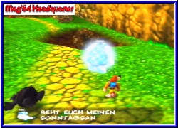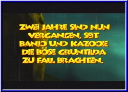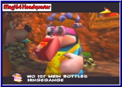Es brechen nun doch nochmal goldige Zeiten für N64 Spieler an. Denn in den nächsten Wochen und Monaten erscheinen auch bein uns noch einige Knaller Spiele. Gerade momentan mit Conker wird der N64 Spieler nochmal verwöhnt. Dabei fast untergegangen das in einigen Tagen ein weiterer Rare Knaller in die deutschen Läden kommt - Banjo Tooie. In meinen Augen und nach dem Test der US Version ein kleines Meisterwerk in Sachen Spielbarkeit, Größe, Grafik und Sound. Gespannt war man nun ob die PAL ähnlich gelungen ist. Nachdem Conker aber z.b. komplett in Englisch ist war eine Sorge das BT vielleicht nicht lokalisiert wurde. Da kann ich aber beruhigen. Startet man das Spiel erwartet euch nun der lange Vorspann, der über die Options nun auch in Deutsch angeschaut werden kann. Ansonsten ist zu Beginn logischerweise alles gleich geblieben. 3 Savegames sind möglich und inhaltlich hat sich nichts geändert. Nur das jetzt beide Charaktere in ihrem schon aus Banjo Kazooie gewohnten schrägen Humor daherreden wenn sie andere Charaktere treffen. Geändert sind viele der Levelnamen und die der Personen und Items. Gerade die Puzzleteile die in der US Version noch Jiggy's hießen heißen nun Puzzlo. Dementsprechend heißt auch der Oberwächter dieser Teile nicht mehr Jiggywiggy sondern Puzello. Ob das nun eine gelungene Übersetzung ist sei mal dahingestellt. Bei den Welten hat man auch recht interessante Namen gefunden. Beginnt das Spiel wie in der US Version in der Isle o'Hags, so geht es in der PAL Version nun später z.b. in der Klunkerkluft Mine zur Sache. Ein wenig gewöhnungsbedürftig. Nichts geändert hat sich übrigens bei den 3 Kazooie Modulen, die auch hier an denselben Stellen vorhanden sind. Wie ich nun mittlerweile weiß konnte ich diese in der US nicht nutzen. Hier hat Rare eine böse Falle eingebaut. Denn nur wenn man eine der Fragen am Ende bei Grunty richtig beantwortet bekommt man ein letztes geheimes Puzzlo. Ich habs damals halt vergeigt, ohne zu wissen um welche Frage es sich handelt. Schon Schlingel die Jungs von Rare. Diesmal ist man etwas schlauer und kann vor dem Ende den Spielstand kopieren falls das Mißgeschick nochmal geschieht. Also ein kleiner Insidertip