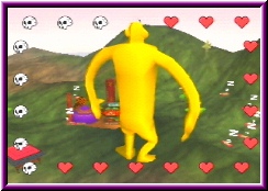 Aber man ist immer gespannt was passiert. Hier trägt nun wieder das nicht verstehen der Sprache und vieler Einblendungen zum Spielspaß bei, da man nicht weiß was passiert. Ein nettes Feature nebenbei ist die Möglichkeit auf der Disk eine Fotogalerie anzulegen. Durch drücken der L-Taste kann man vom aktuellen Screeninhalt ein Bild machen und sich diese Galerie auch einzeln im Hauptmenu ansehen. Dazu wird immer die genaue Uhrzeit sowie das Datum des Fotos mitgespeichert. Genauso gibt es eine Gesamtstatistik über deren einzelne Einträge ich mich nicht bei allen im klaren bin. Sehr schön ist ebenfalls die Möglichkeit jederzeit Punktgenau zu speichern. Ein Vorteil des 64DD. Auch besitzt Doshin einen direkten Zugang zum Randnet um sich mit anderen Spielern auszutauschen. Leider noch nicht aktiv gesehen ist dies sicher auch eine interessante Alternative. Auch kann man seine Fotos online schicken und so andere Spieler an seinen eigenen Erfolgen teilhaben lassen. Der Reiz des Spiels liegt eindeutig im entspannten und vor erwartungsvollen Spielen. Wer auf tolle Grafik steht ist bei Doshin total falsch. Auch Soundmäßig gefällt das Spiel. Vor allem durch die viele Sprachausgabe, auch wenn ich zugeben will das 1-2 Stunden japanisches Gesäusel auch nerven kann. Aber vor allem die Tatsache das die Völker immer wieder neues Bauen macht neugierig was noch so alles passiert. Ein Blick in meine Weltwunder Sammlung zeigt mir überdeutlich das ich noch viel machen muß um hier alles zu sehen. Ebenso die vielen überraschenden Ereignisse, wie Naturkatastrophen halten den Spieler vor dem Screen. Natürlich gehen auch viele Minuten in's Land wo rein garnichts passiert und man nur dumm in der Gegend herumläuft. Hier wären noch ein paar mehr Möglichkeiten mit Doshin wünschenswert gewesen. Das Spiel ist sicherlich kein Suchtspiel. Aber mich zieht es immer mal 1-2 Stunden an den Bildschirm. Und da man unendlich spielen kann hat man auch keinen Druck und kann in Ruhe zusehen wie die Völker ihre Entwicklung steigern. Oder aber auch nicht. Das liegt ganz in den Händen des sanften Riesen Doshin the Giant.