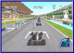 Kritikpunkte gibt es aber auch. So bremsen die Computerfahrer weiterhin immer ein Spur zu früh. Wer den Windschatten einmal hat vor einer Kurve kommt eigentlich immer vorbei. Dafür jagen sie euch schneller in einen Fehler wenn Sie euch am Heck hängen. :-) Ebenso ist der Sound immer noch nicht optimal gelöst. Größters Ärgernis bleibt aber die Grafik. Es hat sich rein garnichts verändert gegenüber RS2. Man hat die komplette RS2 Engine benutzt und die Framerate etwas verbessert. Trotzdem aber für ein Spiel 2000 nicht mehr zeitgemäß. Das hat mich wirklich sehr geärgert. Die Wagen sind nicht sehr detailliert und Randbebauungen werden erst bei nahem vorbeifahren richtig deutlich. So bleibt für mich das grafisch schönste Spiel was Formel Wagen und Naturstrecken angeht wieder mal ein Importspiel - Indy2000 Racing League, das wesentlich mehr Effekte und Speed bietet. Auch sind dort die Strecken breiter, was auch nicht unwichtig ist. Wirklich sehr schade, da die spielerische Komponente durchaus stimmt und für lange und stimmungsvolle Rennen sorgt ohne das man sich über ein unfaires Spiel ärgern muß. Gerade das Setup austüfteln um sich Zehntel Sekunde für Zehntel Sekunde nach vorne zu kämpfen hat mir sehr gefallen. Das dies auch mit Lenkrad optimal klappt spricht für das Spiel. Ebenso das wenn man sehr gut fährt einen Vorsprung herausfahren kann und genauso bei Fehlern zurückfällt. Unfair ist das Spiel nicht. Das liegt an jedem selber. So bleibt es auch Spannend bis zur Zielflagge. Ebenso nicht gefallen hat mir der Duell Modus , in dem wieder nur 2 Mann gegeneinander fahren. Schlimm das es in der N64 Zeit kein F1 Spiel geschafft hat mehr als 2 Fahrer im Multiplayer auf die Straße zu bringen. Auch hier zeigt IRL2000 das es geht. Zwar sind Beeinträchtigungen was Speed und Grafik kaum spürbar, was aber auch nicht verwundert. Wird das N64 keineswegs ausgelastet. Darum denke ich das man das Expansion Pak auschließlich für die spielerischen Komponenten verwendet hat. Was ja nicht schlecht ist. Aber .... wiegesagt. Wer sich weniger mit Setups oder einen schwierigen Fahrverhalten ärgern will ist mit dem Arcade Modus gut bedient. Hier lassen sich die Wagen wesentlich direkter lenken und es darf mehr geräubert werden. Bietet ansonsten die gleichen Spielmodis wie der Sim Modus. Highlight ist hier aber der sogenannte Pick Up & Play Modus. Hier zählt nur eins. Schnell sein und alles aus in Grund und Boden fahren. Vergleichbar mit dem Szenario Modus von F1 WGP muß der Spieler 4 verschiedene Schwierigkeitsgrade a 4 Rennen hinter sich bringen um den jeweils nächsten 4er Turn freizuschalten.