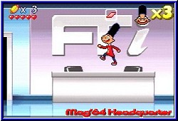 Und weiter geht's im großen Nickelodeon Update. ;-) Neben Jimmy Neutron und dem in Kürze erscheinenden Spongebob gibt auch Hey Arnold sein GBA Debut und alle aktuellen Nickelodeon Trickfilm Serien sind damit spielerisch erhältlich. Wie die anderen Vertreter auch ist Hey Arnold natürlich ein ganz klares Zielgruppen Spiel und richtet sich an die jüngere Spielergemeinschaft, die logischerweise auch noch Fans der Serien sind. Auch unter diesem Aspekt werden solche Spiele natürlich getestet, da es doch schwer ist solche Spiele wirklich richtig einzuschätzen. Ich persönlich würde mir so ein Spiel sicher nicht kaufen. Deshalb muß es ja noch lange keine Gurke sein und kann sich für die Zielgruppe durchaus eignen. Es kann ja nicht nur Spiele wie Advance Wars oder Golden Sun geben. In Hey Arnold: Der Film dreht es sich natürlich dank Lizenz um alles was die Serie für Fans so beliebt macht. Ihr schlüpft in die Rolle des kleinen Arnold und seinen Freunden und müßt versuchen den Abriß des Viertels in dem er lebt zu verhindern. Der böse Herr Scheck will auf dem Boden des Viertels ein Einkaufsparadies bauen, was Arnold und seine Freunde verhindern sollen und wollen. Aufgeräumt und simpel präsentiert sich so auch das Hauptmenu des Spiels. Für nur einen Spieler gemacht kann man lediglich ein neues Spiel beginnen oder per Paßwort ein erreichtes Level anwählen. Beginnt man ein neues Spiel wird die Story anhand kleiner mit Text unterlegter Bilder im Stil der Trickfilme gezeigt. Positiv das alle Texte im Spiel komplett deutsch sind. Inhaltlich erwartet den Spieler ein reinrassiges Jump'n Run der einfachen Sorte in dem 20 Level vor dem Spieler liegen. Dabei gilt es 5 Welten a 4 Level von Schurken zu befreien. Über eine Stadtkarte wählt man eine Welt an und verzweigt danach in die einzelnen Unterlevel, die alle linear hintereinander gespielt werden müssen. Für später positiv das jedes bereits freigeschaltete Level erneut besucht werden kann. Auch deshalb da es im Spiel versteckte Bonusinhalte zu finden gilt um einen Geheimcharakter freizuschalten. Fans der Serie wird es freuen das neben Arnold auch sein Freund Gerald sowie Oma und Opa als spielbare Charaktere vorhanden sind. Beginnt eine Welt liegen 3 reine Jumper Level vor dem Spieler ehe es in der letzten Stage gegen einen Endgegner geht. Gespielt wird das ganze in der bekannten 2D Ansicht in welcher der Spieler den Charakter mit dem Kreuz steuert, per A Taste springen kann und mit der B-Taste Geschosse benutzen kann. Links oben im Screen steht die Lebensleiste sowie die Anzeige über gefundene Footbälle, mit denen man nach Vorbild anderer Spieler sein Leben Konto aufstocken kann. Man startet mit 3 Leben und kann diese so oder per Items in den Leveln erhöhen. Gelungen ist das Rücksetzsystem bei Verlust aller Herzen der Energieleiste.