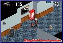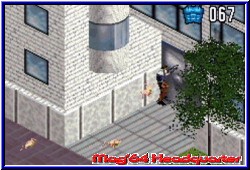 Beginnt man ein neues Spiel liegen 11 Level vor dem Spieler. Was wenig klingt wird durch teilweise große Abschnitte wieder wett gemacht. Wobei neben Lauf und Balleraction auch Racer Abschnitte dazu gehören. Alles beginnt in der Zukunft und das Spielsystem zeigt gleich was abgeht. Gespielt wird das ganze in einer Third Person Perspektive, die sich hier sehr gut eignet. Dazu entdeckt man grafisch schnell Parallelen zu Max Payne. Ob die Animationen der Charaktere oder die gelungenen Texturen der einzelnen Locations samt Details in den Umgebungen. Dazu erlebt man das erste mal gleich eine der Zeitwellen die über den Screen huscht. Hintergrund ist ein neues Feature auf dem GBA. Live im Spiel verändern sich die Umgebungen, in dem Straßen aufgerissen werden, Häuser plötzlich Öffnungen bieten aus denen Gegner herauslaufen und zunächst unerreichbare Locations plötzlich begehbar sind. Grundlage der Steuerung ist glücklicherweise das freie Bewegen nach allen Richtungen und nicht die Iso angepaßte Variante. Man läuft so einfach flüssiger durch die Gegend. Per L-Taste schaltet man durch die Anfangs wenigen Waffen und feuert per A-Taste. B dient dem Sprung während die L-Taste alle möglichen Aktionen definiert. Etwas ungewohnt beginnt das schon beim aufheben eines Items wie Munition. Man läuft nicht einfach darüber, sondern muß drauf stehen und die R-Taste drücken um es aufzuheben. Das gleiche bei Türen, wo ebenfalls erst die R-Taste diese öffnet. Dafür kann man Kisten nicht nur hin und herschieben, sondern auch auf andere Dinge heben, was auf dem GBA auch nichts alltägliches ist und so erst Items wie Wege begehbar macht. Springen, Laufen und Ballern wird begleitet von sehr schönen Animationen und Klängen der Waffen. Auch hier steht das Spiel einem Max Payne in kaum etwas nach. Tauchen nun Gegner aus der Dinoära auf so visiert Travis diese automatisch an, was man an einer Markierung um den Gegner sieht. Jetzt kann man rückwärts laufen und dabei gleichzeitig den Gegner treffen. Ist dieser erledigt wechselt der Aim auf den jeweils nächsten Gegner. Die ersten Waffen sind dabei immer begleitet von Munitionsmangel. Das Maschinengewehr ist immer wieder schnell durchgeschossen und man wünscht sich mehr Munition. Finden kann man die hinter zerstörbaren Objekten oder kleineren Wegen abseits der Story Action. Leitern nach oben oder diversen Zimmern mit Kisten und ähnlichem. Gut wird die Balleraction sobald Travis die Pumpgun findet. Viele Gegner kann man so mit einem Schuß erwischen und das ganze spielt sich solange flüssig bis die Munition alle ist. ;-) Davon kann man in diesem Spiel nie genug haben. Da es keine Schwierigkeitsgrade gibt muß man mit dem Vorlieb nehmen was die Entwickler einem so hinstellen. Ihr lauft also durch die ersten Räume, löst kleinere Schlüsselrätsel und befreit Bekannte.