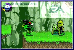 Um den spielerischen Fähigkeiten gerecht zu werden, kann man in den Options aus drei Schwierigkeitsgraden wählen. Doch egal ob leicht, mittel oder schwer, so richtige Spielfreude will einfach nicht aufkommen. Das liegt zum einen daran, das sich der Levelaufbau zu sehr gleicht, womit die Abwechslung flöten geht und zum anderen an der „schwammigen“ Steuerung, was bei einem Jumper immer tödlich ist. Auch ist es sehr irritierend, wenn man mit den beiden Charakteren zusammen springen muß, weil sie sich zu nah beieinander befinden. Mit diesem Game hat EA keinen großen Wurf gelandet um „Massenhysterie“ ausbrechen zu lassen. |