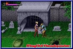Die "L"-Taste dient zur Verteidigung, wobei ich getrost sagen kann, dass ich sie während des gesamten Spieles kein einziges Mal verwendet habe. Mit den "A"- und "B"-Tasten führt Buffy unkonventionelle Schlag- und Trittkombinationen aus, wobei diese nicht unbedingt zwingend erforderlich sind. Simples Knöpfchengedrücke auf eine Taste reicht auch schon aus um manchen Endgegner in den Untergrund zurückzuschicken. Natürlich ist Buffy nicht nur auf ihre geschickten Gliedmaßen beschränkt, uneingeschränkter Waffeneinsatz erweitert das Angriffsrepertoire unserer Protagonistin. Neben einer Armbrust, hat Buffy die Wahl zwischen einem Laser, einem Baseballschläger, unterschiedlichen Weihwasserbehältern sowie anderweitigen Waffenobjekten wie einer Fackel oder einer Axt. Zusätzlich bietet uns das Spiel die Möglichkeit, bestimmte Waffen untereinander zu kombinieren. So beharkt Buffy ihre vampirischen Gegner nach einer Zeit mit feurigen Wurfäxten oder aber durchlöchert sie mit Weihwasser-getränkten Armbrustbolzen. Um immer genügend Nachschub zu erhalten, hinterlässt Eure Gegnerschaft reichlich Waffen beziehungsweise Pick-Ups in Form von blauen sowie roten Herzen, die Buffys Lebensleiste (teilweise) runderneuern. Mit fortschreitendem Spielverlauf findet unsere Jägerin ein mystisches Buch sowie einen magischen Talisman, die die Energieleiste dauerhaft vergrößern und Ihr somit mehr Spielraum im Kampf gegen das Böse habt. Hin und wieder stoßt Ihr vereinzelt auf Extraleben, wobei Miss Summers maximal neun Leben haben kann. Obwohl der Kampfpart im Spiel die meiste Zeit in Anspruch nimmt, erwartet den Spieler unter anderem auch ein wenig Knobelkost in Form von Schalterdrücken, Kistenschieben oder aber Bilderrätseln, die ausnahmslos einfach gehalten wurden und nicht mehr als einen mickrigen Zusatz darstellen. Das Potenzial ist eindeutig vorhanden, aber leider nur bruchstückhaft ausgereizt worden. Freunde dieser Genre-Kost sind eindeutig beim GBA-Ableger von Tomb Raider besser aufgehoben: mehr Umfang, mehr Abwechslung, summa summarum einfach mehr Spielspaß! Auch die Gegnerkost kann nicht wirklich überzeugen und stellt - bis auf die vereinzelten Endbosse - mehr hirnloses Prügelfutter auf zwei Beinen dar. Bestes Beispiel sind die monsterartigen, grünlichen Bestien, die es beileibe nicht gebacken kriegen, Euch zu treffen, obwohl Ihr lediglich in geduckter Haltung seid. Ansonsten hangelt, hüpft und läuft Buffy durch insgesamt 16 eher kleine Levels, die auch im normalen Schwierigkeitsgrad ohne größere Probleme zu schaffen sind. Gespeichert wird nach jedem Level auf der internen Batterie, die Euch bis zu drei Spielstände erlaubt. |