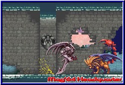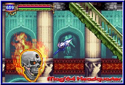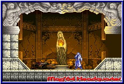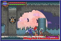 Je weiter man das Schloss erkundet hat, desto mehr Örtlichkeiten sind einem zugänglich, dies ist auch ganz logisch, da man gewisse Fähigkeiten erst nach dem Erledigen bestimmter Zwischenbosse erlernt. Beispielsweise war Soma der Zutritt zu einem neuen Bereich nur durch einen kleinen Gang möglich, jedoch hat man anfangs die Gleitfähigkeit noch nicht erlernt, im späteren Spielverlauf allerdings erhält man diese nachdem man einen Zwischengegner erledigt hat. Apropos Gegner: Wie bereits im Vorgänger begegnen Euch eine Vielzahl der verschiedensten Gegner, die vom harmloseren Wassergeist über den Schlachtmesser-schwingenden Metzger bis hin zum Dämonen Balore reicht. Laut der abrufbaren Gegnertafel trifft man im Spiel auf 112 Gegnertypen, wobei sich einige darunter lediglich in ihrer Angriffsart unterscheiden. Des Weiteren sind manche Feinde durch die Attacke bestimmter Waffen wesentlich empfindlicher als andere, nebenbei sollte man für angriffsstarke Gegner - besonders Zwischenbosse - diverse Taktiken überlegen, um den harten Angriffen zu entkommen. Besonders der Endkampf bringt die Gehirnzellen kurzzeitig zum Glühen, nach ein wenig Grübeln sollte man aber ein wenig taktische Raffinesse beweisen, um auch diesen aus den Latschen zu hauen - wer das ist, wird allerdings an dieser Stelle nicht verraten ;-) . War man im zweiten Teil der GBA-Castlevania-Reihe noch in zwei Schlössern unterwegs, die mittels eines Dimensionstores durchschritten werden konnten, beschränkt man sich beim aktuellen Teil wieder auf ein Castle. Der Spielumfang wird dadurch klarerweise ein wenig geschmälert, Spielspass-mäßig tut es dem Ganzen aber keinen Abbruch. Im Vorgänger nervten teilweise noch die zu langen Laufwege, genau jenes Manko ist mir bei "Aria of Sorrow" kein einziges Mal sauer aufgestoßen. Hat man einen Bereich zur Genüge "studiert", ist es meist sonnenklar wo es als nächstes hingeht; nur hin und wieder steht man verlassen in der Wüste und muss seine nächsten Schritte ein wenig genauer überdenken. Der Schwierigkeitsgrad von "Castlevania - Aria of Sorrow" gestaltet sich hingegen teilweise ziemlich happig, auf Grund der begrenzten Stückzahl an Zauber- sowie Magietränken kann es schon des öfteren passieren, dass man eine Stelle erneut besuchen muss. Um solche Probleme zu umgehen, integrierten die Entwickler das innovative Feature der "taktischen Seelen". Jeder einzelne Kreaturentyp besitzt eine solche Seele, jedoch kann es Euch passieren, dass Ihr ein Skelett gleichen Typs zum einhundertsten Mal in seine Einzelteile zerlegt, dennoch an keine Skelettseele kommt. Teilweise gehen die Seelen auch schon nach dem ersten Kill auf Eure Hauptfigur über. Beeinflussen, geschweige denn beschleunigen, könnt Ihr diesen Fortgang nicht.