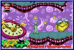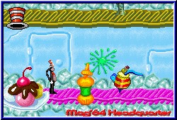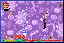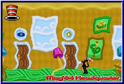 Wenn der GBA neben vielen excellenten Spielen für eines steht, dann für das Ausschlachten von Lizenzen aller Arten. Ob nun Comics, diverse Trickflimserien oder den spielerischen Ablegern von Kinofilmen. Damit sich das auch nicht ändert erscheint mit The Cat in the Hat ein weiteres Spiel aus dieser Rubrik. Wobei gerade diese Umsetzung in Sachen Lizenz sicher den wenigstens unter euch etwas sagt. Grundlage ist ein Kinderbuch des "Grinch" Autors Dr. Seuss aus dem Jahre 1957. Das solche Lizenzen gerne mal verfilmt werden wird man in den deutschen Kinos im April merken. Dann kommt der Film dazu mit Schauspielern wie Mike Myers und Alec Baldwin in die Kinos. Das Spiel hält sich dabei ebenfalls an die Vorlage was sich Storytechnisch wiederspiegelt. Es war einmal eine Truhe, die verbarg geheimnisvolle Dinge. Der kleine Conrad und seine Schwester Sally lassen sich vom grimmigen Nachbarn Lawrence Quinn überreden, die Truhe zu öffnen. Plötzlich macht es bumm, und das Unheil nimmt seinen Lauf! Jetzt toben all die Kreaturen aus der Märchenwelt durch das Elternhaus. Nur gemeinsam mit dem verrücktesten Kater aller Zeiten können Conrad und Sally die Ordnung wieder herstellen, bevor Mami nach Hause kommt. Was kindlich anmutet entspricht auch in diesem Spiel der Zielgruppe, die mehr in der jüngeren Spielergemeinde zu suchen ist. Im Spiel selber übernehmt Ihr die Rolle 2er Charaktere. Die des Katers und des Tauchers Dan. Mit ihnen müßt Ihr also wieder für Ordnung sorgen. Das komplett deutsche Spiel bietet lobenswerterweise einen Batteriesave, der erspielte Erfolge per Autosave auf 2 Spielständen sichert. Das Spiel selber ist im Großteil ein 2D Jumper der herkömmlichen Art und wird durch Unterwasser und Racer Level erweitert. Startet Ihr ein Spiel könnt Ihr ein neues beginnen, ein gespeichertes Laden sowie in den Optionen den Soundpart und die Credits begutachten. Beginnt man ein neues Spiel wird die Geschichte in gutgemachten Fotos erklärt. Am Ende findet man sich in der sogenannten Hauptwelt wieder, von der man jederzeit verzweigen kann. Ihr müßt von hier die insgesamt 4 Welten aufsuchen und dort in den jeweiligen Portalen Türen betreten hinter denen sich die Level verbergen. Ihr spielt den Großteil des Spiels mit dem Kater und müßt so insgesamt 13 Level spielen, ehe Ihr zu den Bonusaufgaben antreten könnt. Dabei ist das Spiel ein typisches Aufgabenspiel neben dem reinen Jump'n Run Inhalt. Betretet Ihr ein Level ist es das Ziel in jedem eine bestimmte Anzahl der Kreaturen wieder einzufangen. Per Pausenmenu kann man übrigens jederzeit nachschauen wieviele der gesuchten man hat und wieviele noch fehlen. Die Grundsteuerung unterscheidet sich nicht von anderen Jumpern. Ihr steuert mit dem Kreuz und könnt per A-Taste springen.
