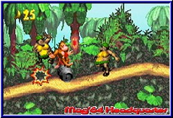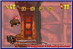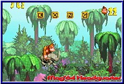 Es ist nun schon einige Zeit her das sich Rare aus dem Nintendo Universum zurückgezogen hat. Nach dem anfänglichen Aufschrei ist es recht still um die englische Softwareschmiede geworden. Nun kommen sie über Umwege doch nochmal zurück auf ein Nintendo System. Mit Donkey Kong Country schickt Nintendo den Rare Jumper auf den GBA. Seinerzeit ein Grafikwunder auf dem SNES, bei dem damals viele dachten es wären erste frühe N64 Screens, ist das Spiel allerdings für Handheld Spieler nicht unbedingt etwas neues. Vor 3 Jahren erschien das Spiel auch schon für den GBC, was im Moment das Vorurteil zu viele Remakes auf den GBA zu portieren, nicht gerade entkräftet. Und in der Tat findet der Spieler inhaltlich die gleiche Version wie auf dem GBC. Natürlich technisch angepaßt für den GBA. Mit wenigen Neuerungen an sich soll der Spieler nun nochmal geködert werden. Was inhaltlich schon das gleiche ist wie damals trifft demnach auch auf die Story zu. Donkey Kong ernennt kurzerhand seinen Kumpel Diddy zum Wachmann seiner Bananen Vorräte. Es kommt wie es kommen mußte und Diddy wird Opfer eines Überfalls. Die hinterlistigen Kremlins klauen die Bananen und Donkey Kong samt seinem Freund Diddy machen sich auf den Weg diese zurück zu holen. Das für 2 Spieler gemachte Game kommt natürlich komplett deutsch daher und bietet auf dem Hauptmenu das reine Abenteuer, den Countdown Modus und die Extras. Der Countdown Modus ist dabei nichts anderes als ein Art Time Trial. Alle Level die Ihr im Hauptspiel freigespielt habt dürfen so einzeln angewählt werden und nach Zeit durchlaufen werden. Dies ergibt am Ende einen Score der ebenfalls auf der internen Batterie abgespeichert wird. Der Extra Modus beinhaltet 2 Bonusspiele, die im Falle des Angelns aber auch nicht brandneu sind. Doch dazu später noch ein paar Worte. Beginnt das Spiel dürft Ihr zunächst auswählen wieviele Spieler teilnehmen sollen. Etwas verwirrend gemacht. Während Ihr im Hauptspiel an einem GBA spielen könnt, sind die Extras mit 2 GBA's samt Linkkabel spielbar. Im Hauptspiel spielt ein Spieler bis er ein Leben verliert. Dann schaltet das GBA in einen Pausenmodus und der 2. Spieler kann loslegen. Auch beim manuellen Tausch der Charaktere ist dies so geregelt. Danach gibt man seinen Namen ein unter dem in einer Prozentangabe alle Fortschritte auf einem der 3 Batterieslots festgehalten werden. Leveltechnisch erwartet den Spieler der gleiche Ablauf wie auf dem SNES und dem GBC. Über eine Inselkarte verzweigt man in die einzelnen Welten mit den einzelnen Leveln. 6 Welten stehen zur Verfügung, die neben Action Leveln auch alte Bekannte Charaktere aus dem DK Universum beinhalten. Wer Candy, Funky oder Cranky wiedersehen möchte trifft alle in ihren Behausungen auf seiner Reise.