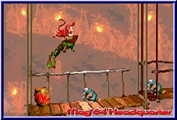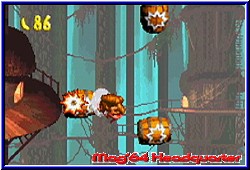 DK Country ist grundlegend ein reiner 2D Jumper, bei dem Ihr aber nicht allein auf Entdeckungsreise gehen müßt. Denn nach einer kurzen Weile findet DK das erste mal seinen Freund Diddy in einem Faß versteckt. Jetzt ist es so das Ihr immer einen der beiden steuert. Der andere wuselt allerdings Live mit euch mit bis Ihr wechselt oder der aktive Charakter draufgeht. Gesteuert werden die Charaktere per Kreuz und können per A- Springen und mit gedrückter B-Taste die berühmte Roll Attacke ausführen. Dazu kommen der Charakterwechsel mit der L-Taste sowie z.b. der Handklatscher bei nach unten gedrücktem Kreuz und der B-Taste. Hält man B gedrückt rennt der Charakter und man schafft so auch weitere Sprünge. Die Steuerung an sich ist recht kurz gehalten. Es gibt mittlerweile weichere und bessere Steuerungen für Jump'n Runs. Man sollte also ein gutes Timing bei seinen Sprüngen besitzen. Ziel in jedem Level ist das erreichen des Exit Bereiches. Davor liegt aber oftmals ein Level das euch alles abverlangt und DKC definitiv in Kiste der sehr anspruchsvollen Spiele gehört. Dabei ist dafür nicht nur das Level Design verantwortlich, sondern etwas ganz anderes. Nämlich die fehlende Energieleiste für so ein Spiel. Etwas das ich persönlich immer als nachteilig und antiquiert empfinde. Sobald Ihr mit dem aktiven Charakter einen Treffer kassiert ist er sofort weg und der zweite wird aktiviert. Habt Ihr keinen zweiten oder erleidet auch dieser einen Treffer beginnt Ihr von vorn. Da die Level oft sehr groß sind und nur einen Rücksetzpunkt haben sind Frustmomente sehr häufig. Vor allem wenn man immer wieder kurz vor dem Ende draufgeht. Denn die Level sind teilweise mehr als anspruchsvoll. Mit dem Feature besonders. Vom Springen und Gegner beseitigen mal abgesehen hat Rare schon damals gewußt wie man schwere Spiele macht. Sei es durch ein Level an Lianen zu schwingen, dabei von wilden Wespen umgeben zu sein, die immer einen festen Weg schweben. Bei einer Liane die aber automatisch ihren Weg macht und Ihr reagieren müßt ist das ganz schön knackig. Oder das Fässerfeature, was viele vielleicht erst mit DK64 kennen gelernt haben. Drehende oder sich in alle Richtungen bewegende Fässer in denen Ihr am laufenden Band im richtigen Moment drücken müßt um zum nächsten zu kommen. Dazu jagen euch Gegner durch Level, die nicht stehenbleiben. Man könnte die Liste beliebig fortsetzten. Oder auch die Themen der Level. So z.b. natürlich auch unter Wasser wo sich DK oder Diddy etwas anders steuern oder auch im Eislevel, wo es auf abschüssigen Abschnitten rutschig ist und man neben Gegnern auch höllisch aufpassen muß wo man seine Füße hinsetzt. Trotzdem wäre eine Lebensleiste in meinen Augen eine gute Zugabe gewesen. |