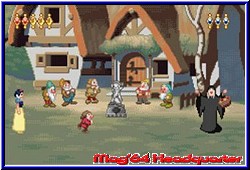 Eine einfache Steuerung, die in kurzen Sprüngen endet und wenig beinflußbar ist. Was aber auch nicht sein muß. Denn neben der Sprungtaste A gibt es einzig die B-Taste die man im Spiel braucht. Diese Taste dient entweder der "Attacke" der jungen Damen oder einer speziellen Tätigkeit. In Sachen Attacken kann Schneewittchen z.b. Singen um Gegner sanft in den Schlaf zu wiegen, während Belle z.b. Schneebälle in ihren Leveln wirft. Man läuft an Gegnern vorbei, hüpft kurz und sammelt dabei Items oder gesuchte Dinge ein. Mehrere Bildschirme ist so ein Level groß, bietet aber beim zurückwechseln immer wieder neu generierte Gegner. Die Schwierigkeit, so man sie so nennen will ist das reagieren auf die Gegner. Gewalt gibt es hier keine, was auch unglaubwürdig wäre