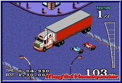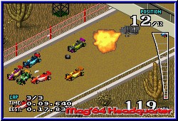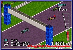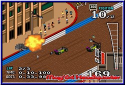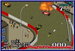 Eher ein Aufschaukeln wie im Rally Sport, das aber unkontrollierbar werden kann. Ein geteiltes Bild. Gute Wagen steuern sich gut, schlechte eben weniger gut. In den Optionen könnt Ihr einstellen ob Ihr mit M/PH oder K/MH fahren wollt, was ich sehr begrüße. Die Wagen besitzen auch ein Schadensmodell. Das heißt Rempler und fahren gegen die Mauer hinterlassen Spuren. Zunächst verliert er Teile, was auch grafisch sichtbar ist, im Endstadium qualmt er bis er schließlich explodiert und man um einiges hinter dem Unfallpunkt wieder abgesetzt wird. Schade das man dafür keine Anzeigen hat. Man vertraut ab und zu auf sein Gefühl wann der Zeitpunkt da ist. Auf dem Screen zeigen sich noch andere Anzeigen. Neben Geschwindigkeit und Rundenzeit ist die vor allem eine lange Anzeige von oben nach unten auf der rechten Seite des Screens. Diese füllt sich im Verlauf eines Rennens dann wenn man alle Streckenabschnitte in ungefähr gleicher Geschwindigkeit durchfährt. Auf jeder Strecke verschieden gut möglich bewirkt eine volle Anzeige das der Wagen "In the Zone" ist. Keine Sorge - Basketball wir nicht gespielt. ;-) Sobald der Wagen dies erreicht wird ein Schweif um ihn gelegt und er ist unverwundbar und extrem schnell. Das ganze für eine gewisse Zeit. Vor allem grafisch gefällt mir dieser Effekt doch sehr. Ausgestattet mit diesem Wissen kann man sich Meisterschaft wagen. Hier stehen 8 Rennen vor dem Spieler, wobei 2x davon auf einer bekannten gefahren wird. Hier geht es logischerweise nach Punkten. Die gibt es nach jedem Rennen im Formel 1 Format und ergeben am Ende der Saison den Champion. Hier gibt es vor jedem Rennen ein Qualifying und man erhält die Möglichkeit auf der internen Batterie zu speichern. Das dann nach jedem Qualifying oder Rennen. Wenigstens 2 Batterieplätze wären wünschenswert gewesen. Aber nach dem Paßwort Fiasko eines Advance GTA muß man schon froh sein überhaupt eine Batterie vorzufinden. Hier kann man nun ebenfalls in den Optionen einen aus 4 Schwierigkeitsgraden auswählen. Was aber auch einen der größten Kritkpunkte offenbart. Selbst im Expert gewinnt man eine Meisterschaft ohne Probleme. Dafür werden euch 11 Gegner spendiert, die auf der Strecke mit euch herumwuseln, die auch alle mal gleichzeitig auf dem Screen auftauchen. Fahren die Wagen dann im Screen auf einem kurzen Abschnitt nach oben gibt es ganz kurze Slowdowns. Nicht nachteilig, aber spürbar. Fährt man hier mit dem besten Wagen macht das ganze Laune, auch wenn man die Meisterschaft ohne Probleme gewinnt. Die Strecken sind von einfach bis verwinkelt designt und bieten viel fürs Auge. Animierte Zuschauer, wechselnde Untergründe bis zu verschiedenen Backgrounds wie Landstrecken bis zu Stadtkursen. Trotzdem hätten es ein paar mehr sein können. |