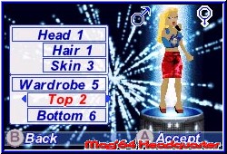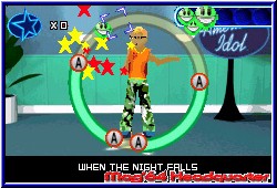 Und wieder einmal schreibt das Testprozedere seine ganz eigene Geschichte. Dachte man mit Barbie, Bratz & Co wäre die höchste Stufe eines 32 Jahre alten männlichen Testers erreicht, so wurde ich dann doch wieder eines besseren belehrt. ;-) Ich persönlich zähle mich zu der Gruppe von Leuten die bei DSDS eher an ein Paßwort denken als an eine deutsche Fernsehshow. Aber irgendwann wird jeder bekehrt. Und wenn es über Umwege als Spiel zu einem kommt. Keine Sorge an die eingefleischten DSDS Fans. Ich werde kein Spiel verreißen nur weil ich vom realen Vorbild nicht unbedingt allzuviel halte. Aber lustig sind die Wege des Herrn dann doch schon. Also gut. Mit DSDS für den GBA dürfen nun auch die Nintendo Jünger wenn sie wollen in die Fußstapfen eines Alexander treten und sich zum Superstar aufschwingen. Dabei bietet das Spiel neben komplett eingedeutschten Texten auch eine vollständig lokalisierte Sprachausgabe, über die man später noch ein paar Worte verlieren kann. Schade das man dem Spiel keine Batterie spendiert hat. Denn beim Thema freispielbare Dinge steht DSDS auf dem GBA an vorderster Front. Das Hauptmenu offeriert euch neben den Spielmodi den Paßwort Screen sowie die Optionen. Hier kann man sich bei Erhalt eines finales Paßwortes alle erspielten Dinge anschauen und aus 2 verschiedenen Auflösungen wählen. Etwas irritierend ausgedrückt wählt man so aus 2 verschiedenen Helligkeitsvarianten aus, die auch für Besitzer des alten GBA ausreichend Kontrast bieten. Kern des Spiels sind natürlich die reinen Spielmodi. Einmal angewählt findet man hier den originalen Wettbewerb, einen Proben Modus sowie einen Marathon Modus. Für einen ersten Kontakt sollte man den Proben Modus anwählen und man macht Bekanntschaft mit einem der wichtigen Features im Spiel. Ihr könnt euch entscheiden ob Ihr männlich oder weiblich daherkommen wollt und könnt wie auch in den anderen Modi eurem angehenden Superstar eine Outfit verpassen. Neben Kopf, Frisur, Hautfarbe gilt es Klamotten auszuwählen von denen es im Verlauf des gesamten Spiels hunderte freizuspielen gilt. Unter anderem gilt es ja auch die "Zuschauer" mit seinem Aussehen zu überzeugen, was ja auch einen Teil der Wahl ausmacht. Geht man direkt in das Spiel so besteht der Spielscreen mit wechselnden Hintergründen immer aus dem gleichen Hauptteil. Ihr seht euren Charakter in der Mitte der Bühne stehen und um ihn herum einen Kreis. Über diesen Kreis läuft nun eine Anzeige und wechselnd tauchen auf dem Kreis die Tasten des GBA auf. Mal A und B allein um später auch zusammen aufzutauchen. Jetzt wählt man einen Song aus, wobei man hier aus 21 bekannten Titeln wählen kann. Passend findet man hier gängiges Material einer Britney Spears, Robin Williams oder auch Klassiker wie "I Will Survive". Allerdings und das ist ein Unterschied zu Spielen wie Barbie oder Bratz ohne original Gesang. Vielleicht eines der besten Features im Spiel und auch oftmals ein Grund zum Schmunzeln. Denn einmal angefangen müßt Ihr nun ein Viereck das um den Kreis läuft immer dann mit der richtigen Taste bedienen wenn dessen Symbol im Kreis auftaucht. Nur dadurch animiert Ihr euren Charakter zum Singen.