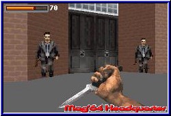 Auch Clipping Fehler oder wegpoppende Wände habe ich im Spielverlauf keine gesehen. Die Waffen wirken sehr real in ihrer grafischen Darstellung. Im Spiel enthalten sind 10 Waffensysteme, die alle reale Vorbilder haben. Ob eine Heckler&Koch oder ein M16. Pseudo Namen findet man hier nicht. Dabei auch ein Messer, sowie Granaten die in jeden guten Shooter gehören. Gleich geblieben ist auch hier das Feature jedes Level bei 0 zu beginnen. Durch das Paßwort System auch schwer umsetzbar seine erreichten Waffen zu behalten. Was die Steuerung angeht hat sich auch hier mittlerweile eine Variante auf dem GBA durchgesetzt. Dienen die L und R Taste dem seitlich laufen, so steuert Ihr logischerweise den Charakter mit dem Steuerkreuz. Nach oben und unten schauen ist auch hier nicht drin. Gegner, die leicht erhöht stehen trefft Ihr beim halten der Richtung. Ausnahme bildet die wieder enthaltene Sniper Waffe, die erneut äußerst genial daherkommt. Weit Zoombar könnt Ihr mit ihr nun auch weit erhöhte Gegner treffen. Gerade manche Granatenwerfer verschanzen sich gerne mal auf einem Haus und sind meist nur so zu treffen. Mit der A-Taste wird geschossen und per B-Taste zwischen den verfügbaren Waffen durchgeschalten. Per Select wechselt man in den Ziel Modus. Hier steuert man einzig das Fadenkreuz, während der Charakter auf der Stelle stehenbleibt. Mit dieser Steuervariante hat man keine Probleme. Auch hier nicht. Drehungen gehen schnell vonstatten und Feinjustierung beim anvisieren ist kein Problem. Munition wie Med Kits findet man erneut nach dem ableben von Gegnern oder versteckt in Objekten wie Krügen die man nun zerschießen kann. Neu ist z.b. ein Geiselsystem. In verschiedenen Räumen muß man diese befreien in dem man die Wachen umlegt. Danach spricht man die Geisel an die sich bedankt und dem Charakter nun folgt. Das ist dahingehend wichtig das man eine finale Tür nur dann durchschreiten kann wenn man dies im Schlepptau hat. Man kann ihnen auch die Anweisung geben an einer Stelle stehen zu bleiben. Vergißt man sie später wieder mitzunehmen irrt man ewig umher. 2 Stunden in einem Level meinerseits ehe ich dies gemerkt habe sind ein Beleg dafür. ;-) An Gegnern gibt es wenig verschiedene. Einteilen kann man diese in 2 KI Gruppen. Das Kanonenfutter, die blind in ihr verderben rennen und die gehobenen, schweren Gegner die mit der Shotgun oder einem Granatenwerfer auch mal warten und nicht blind drauflosballern. Von daher bietet das Spiel mehr Anspruch als der Vorgänger. Überraschend das Severs Part schwerer ist als der von Ecks. Auch sind bei ihr die Level wesentlich größer, während Ecks mehr der Häuser Kämpfer ist und im inneren vorgeht. |