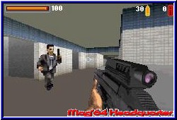 Die Kollisionsabfrage ist gut und man trifft auch nur wenn man die Gegner genau anvisiert. Hier gibt es die bekannte grafische Einschränkung, das entfernt stehende Gegner nur einen Pixelhaufen darstellen. Dafür bleiben erledigte Gegner bis zum Schluß liegen. Immer ein guter Indikator für bereits besuchte Orte. Die Level bieten dabei einiges an Schalterrätseln, die meist durch das finden und erledigen einer bestimmter Wache gelöst werden können. Man rennt die Level teilweise also mehrmals ab. Von der Spielzeit her nehmen sich beide Spiele nicht viel. Ebenso bringt der Nachfolger einen Kritikpunkt wieder mit. Der fehlende Sound im Spiel. Nur Waffen und Laufgeräusche mögen auf einem GCN Spiel atmosphärisch wirken. Auf dem GBA muß wie bei Doom eine Musik dudeln um Spannung aufzubauen. Das fehlt hier leider wieder. Die Waffen klingen dagegen recht gut. Wie auch endlich verständliche Sprachsamples der Wachen wenn sie euch entdecken. Der Multiplayer bietet in dem Sinne nichts neues. Für 2-4 Spieler ausgelegt, wobei jeder ein Modul braucht dürfen 3 Spielmodis gespielt werden. Neben dem Death Match gibt es den Bomben Modus. Hier muß jeder Spieler 3 Bombenteile finden und an einen bestimmten Ort bringen. Also ein etwas aufgebohrter Death Match Modus. Team Arbeit gibt es im Attentat Modus. 2 Spieler sind angesetzt einen VIP zu erwischen, während die anderen beiden die Body Guards stellen. Hier merkt man doch ab und zu kleine Ruckler in bestimmten Umgebungen. Spaßig sind die Modis aber allemal, wenn auch kein Killer Feature. So ist der 2. Teil eher eine Detail Verbesserung hier und da. Eine verbesserte Grafik, gepaart mit neuen spielerischen Elementen werten das Game auf. Vieles das genial ist wie die Sniper gabs auch schon im ersten Teil. Der fehlende Sound stört auch hier wieder. Ein guter Shooter der nach Doom am meisten gefällt. Wer lieber auf reale Hintergründe bei Waffen und Gegnern steht ist hier richtig. Wer einfach nur einen Shooter spielen will auf dem GBA greift immer noch zu Doom.