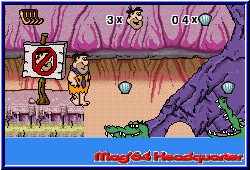 Schon seit Anbeginn der Videospiele haben Games mit Lizens diverser Trickfilm oder Kinohelden einen gewissen Ruf. Mehr Geld in die Lizens als in das Spiel. Obwohl sich dies in letzter Zeit gebessert hat und nur noch wenige negative Ausreißer den Spieler erwarteten. Das man dieses Vorurteil dann aber doch nicht vergißt, dafür sorgen ab und zu Spiele wie dieses. Ich muß sagen das ich hier nach einer gewissen Spielzeit von unserer Testphilosophie abgegangen bin ein Spiel bis zum Ende zu spielen. Das will schon was heißen. Selbst in mäßigen Games kann man sich bis zum Ende quälen. Familie Feuerstein: Bedrock steht Kopf macht selbst dieses Vorhaben zunichte. Was in diesem Fall an sehr vielen Dingen liegt. Zunächst jedoch bietet das Spiel auch positives. Nach dem Einschalten des ebenfalls in komplett deutsch gehaltenen Spiels darf der Spieler wählen ob er das Spiel beginnen will oder in den Optionen den Schwierigkeitsgrad einstellen möchte, den Sound anpassen und die Steuerung wählen will, wobei sich die beiden Varianten in unterschiedlichen Belegungen der A und B Taste unterscheiden. Danach im Hauptspiel wird die Story in kleinen Standbildern gezeigt, die sehr gut gelungen sind und einen gewissen Tiefeneffekt besitzen. Hier trifft Fred den Bösewicht des Spiels - Dr. Sinister. Dieser auf Rache in Bedrock sinnende Schurke entführt dazu seinen Freund Barney. Was Fred ja nicht auf sich sitzen lassen kann. Ist der Einstieg stimmig kommt man auf der Levelkarte das erste mal in's stutzen. Eine abgedunkelte Karte bietet einen Art Pfad, auf dem das erste Level anwählbar ist. Insgesamt liegen 12 Level vor dem Spieler, wobei man aber auf jede Speichermöglichkeit verzichtet hat. Der Spieler muß also das Spiel an einem Stück durchspielen. Etwas das mich sehr stört. Egal welches Genre das nun ist. Nun könnte man sagen 12 Level sind nicht viel. Das schafft man doch mit einer wenig Geduld. Dieser Vorsatz wird nach dem ersten Level schnell ad acta gelegt. Spielerisch ein 2D Jumper gilt es in jedem Level einen Endbereich zu finden. Dies geschieht auf Jump'n Run typischen Dingen wie Plattformen, beweglichen Blöcken und kleineren Auflockerungen wie Sprungtüchern um hohe Ebenen zu erreichen. Schnell wird allerdings klar das man dem Wort Unfairnis hier eine eigene Bedeutung zugedacht hat. Das beginnt schon bei den Gegner im Spiel, die laufend, fliegend und werfend euch das Leben schwer machen. Diese sind sehr oft nicht sichtbar und erwischen euch obwohl man sie garnicht sieht. Die Lebensleiste ist manchmal so schnell leer das man sich fragt ob dies das erste Spiel in des Testers Händen ist. Der erste Frustmoment. Leider ist auch technisch wenig optimal. Zwar mit einer ordentlichen Comic Grafik ausgestattet ist das Scrolling höchst Kritikwürdig. Dreht man den Chatakter geht das Bild gleich garnicht mit.