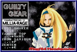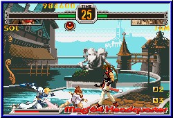 So langsam kommt auf dem GBA auch das Prügelgenre in Schwung. Zwar immernoch in Erwartung eines Street Figher 3 kommen doch immer mehr dieser Titel auf den Markt. Über bigben, die auch UK Releases in unseren Breiten vertreiben kommt nach King of Fighters nun mit Guilty Gear X ein weiterer Klassiker der Konsolen Geschichte auf den GBA. Wie sich zeigen sollte wäre eine Mischung aus beiden Spielen das fast perfekte Beat'em Up geworden. Zunächst kommt auch Guilty Gear X mit einer recht typischen Hintergrundstory daher. Gut gegen Böse, wobei diesmal die Charaktere im Spiel auch den Bösen Part übernehmen. Die sogenannten Gear's, Kämpfer der teuflischen Seite standen den Menschen immer als Bedrohung gegenüber. Eines Tages wurde der Führer der Gear's in einem Turnier geschlagen. Die Hoffnungen auf eine Ende der Gear's sollten sich schnell erledigen, als Gerüchte über einen neuen schrecklichen Gear die Runde machten. Und so wurde ein weiteres Turnier veranstaltet in der Hoffnung den neue Bedrohnung zu eliminieren...... Zumindest eine Story, die dem Spiel auch gerecht wird, auch wenn sie im Game selber kaum auftaucht. Das für 2 Spieler konzipierte Spiel erlaubt euch auf dem Hauptmenu folgende Punkte zum anwählen. De Arcade Modus, den VS. Modus für 2 Spieler wobei jeder Spieler eine komplette Ausstattung benötigt, den Survival, den Trainings Modus, das Tag Match, das 3-3 Match und die Options. Die Fülle an Modis zeigt sich auch in den Options. Neben Game Options wie Schwierigkeitsgraden, Zeit- und Kampfdauer Einstellungen kann der Spieler die Farbe der Kämpfer ändern, die Steuerung in 2 Varianten nutzen und im Ranking die erreichten Scores einzusehen. Hier sollte der Spiele aufpassen den Autosave einzustellen um seine Erfolge auch dauerhaft zu speichern. Manuell jedesmal in die Options zu gehen kann man auch mal vergessen. Schade das nur die erreichten Scores gespeichert werden und nicht innerhalb der einzelnen Modis. Erster Kontakt sollte im Trainings Modus sein. Das Spiel erlaubt euch eine 3 und 4 Wege Steuerung. Entweder mit L,R, A und B oder eben ohne die L Taste, wobei jetzt 2 Moves auf eine Taste gelegt werden. Man sollte bei der 4 Wege Technik bleiben. Probleme bereitet sie keine. Innerhalb des Trainings wählt Ihr einen der verfügbaren 14 Kämpfer und wählt eine von anfänglich 8 Stages aus. Wie immer kann man das Gegner Verhalten beeinflussen um sich einer bestimmten Taktik ausgiebig widmen zu können, ohne das der Gegner einen gleich mörderlich umhaut. 3 Dinge fallen nach einer ausgiebigen Runde im Training schnell auf. Zum einen das positive - die Steuerung. Sie ist zum einen äußerst schnell, sehr direkt und läßt eine Menge an Moves zu. Dem zugute kommt die Tatsache das viele Charaktere Waffen bieten.