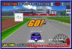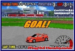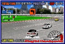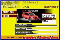 Einer der Starttitel des GBA Launch im Jahr 2001 war GT Advance. Ein Racer der zum einen überraschte und aus dem GBA unerwartete Dinge herausholte. Leider krankte das Spiel am Paßwort Modus, den nur die dt.Version damals bot. GT2 war danach eigentlich kein richtiger Nachfolger, da MTO als Entwickler plötzlich den Rally Sport entdeckte. Die gleiche Engine, nur diesmal auf sandigen und staubigen Pisten. Erst jetzt mit GT3 kehrt MTO zu seinen Wurzeln zurück und bringt wie im ersten Teil reine Tourenwagen an den Start, wobei der Zusatz im Titel Pro Concept Racing nur einen kleinen Teil der Fahrzeuge im Spiel anschneidet. Eines kann man nun aber auch von der dt. Version sagen. Auch sie bietet nun standardmäßig eine Batterie und macht die viel zu langen Paßwörter des ersten Teils überflüssig. Zunächst jedoch erwartet den Spieler einer der wenigen Concept Cars im Titel Screen und man gelangt ohne große Umschweife auf das Hauptmenu. Das in englisch gehaltene Spiel bietet hier neben den Single Player Modi auch einen Multiplayer an, der für 2 Spieler gedacht ist. Weitere Punkte sind die Meisterschaft, das Quick Race, der Time Trial sowie als Bonus der Punkt Drift Combo und als Belohnung für das Durchspielen der Punkt Extras. Dazu kommen die Optionen die euch einzig den Soundpart, die Rekorde Bildschirme und das Löschen des internen Speichers anbieten. Kenner des ersten Teils werden Parallelen in den Spielmodi feststellen. Leider nicht die einzige Parallele zum ersten Teil. Kern des Spiels sind die Meisterschaften. Wie im ersten Teil sind 4 davon vorhanden, die Ihr nach und nach freispielen müßt. Je 11 Strecken müssen hier absolviert werden, wobei 3 Strecken jeder Klasse nur kurze Abschnitte sind, auf denen man die Lizenz für die kommenden 8 Rennen der jeweiligen Klasse erhält. Also im Endeffekt 32 Strecken, die auch der erste Teil bot. Ziel auf jeder Strecke ist es mindestens Bronze zu erfahren um zur jeweils nächsten Strecken zu gelangen. Um dies zu bewerkstelligen benötigt man natürlich Fahrzeuge. 20 davon sind vom Anfang an anwählbar und der Spieler kann sage und schreibe 77 Fahrzeuge freifahren. Hier trumpft das Spiel mit einem neuen Rekord auf. Dabei stehen euch aber wieder nur japanische Fabrikate zur Verfügung. Egal ob käufliche Straßenfahrzeuge oder die angesprochenen Concept Cars. Jeder Wagen verfügt über verschiedene Eigenschaften in Sachen Speed, Beschleunigung und Handling. Beginnt man mit schwachen Fahrzeugen kann man mit der Zeit durch Gold Pokale immer neue freischalten und so den wachsenden Ansprüchen der Klassen gerecht werden. Dazu ist erneut eine Garagen Funktion enthalten, die exakt die gleichen Punkte wie der erste Teil bietet.
