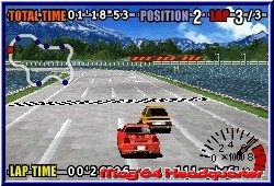 Auf verschiedenen Strecken verteilt findet man so Upgrades die man für den eigenen Wagen einsetzen kann. Das schöne das bei einem Fahrzeugwechsel alle Upgrades aus dem alten "entnommen" werden und im neuen landen. Hat man sein Wägelchen gefunden kann man sich der neuen Strecke widmen oder später bereits absolvierte jederzeit neu fahren. Und hier begegnet dem Spieler altbekanntes zu dem man positiv wie negativ stehen kann. Eigentlich hat es sich MTO sehr einfach gemacht. Denn die Engine ist die gleiche wie vor 2 Jahren. Ihr fahrt im Spiel nicht in einer aus dem Horizont scrollende Strecke sondern in Pseudo 3D Strecken. Vorteil ist das man die Strecke von weitem einsehen kann. Umgebungsgrafik, Gamespeed und vor allem die Steuerung ist exakt die gleiche wie im ersten Teil. Einziger sichtbarer Unterschied ist eine glattere Darstellung der Fahrzeuge, die MTO sehr gelungen ist. GT3 ist also auch hier wieder ein Arcade Racer der immens vom Driften der Fahrzeuge lebt. Nur so sind vor allem schwerere Strecken zu meistern. Es gibt wieder verschiedene Wetterbedingungen und Tag / Nacht Rennen. Ihr fahrt gegen 7 CPU Gegner, die nicht alle gleichzeitig, sondern nach und nach euch auf der Strecke begegnen und überholt werden müssen. Gefahren werden 3 Runden und am Ende ermittelt man so die 3 Sieger. Werdet Ihr 4. oder schlechter dürft Ihr den Kurs nochmal fahren. Die Steuerung ist nach wie vor gelungen und geht leicht von der Hand. Vor allem das Driften will gelernt sein, bietet aber den gleichen Spaß wie der erste Teil. Die Wagen reagieren sehr schön direkt ohne den Spieler zu überfordern. Dazu ein schöner schneller GameSpeed und vor allem eine Verbesserung der Motorenklänge zeichnen den dritten Teil aus. Aber er bringt auch die Macken des ersten Teils mit. Stadtrennen bieten keine Auslaufzonen und teilweise zu verwinkelte Kurse. Einmal verbremst und man eckt an der Wand an, die den Wagen fast ruckartig stoppt. Oder die Kollisionsabfrage ist euch nicht gut gewogen und der Wagen "hängt" manchmal an der Streckenbegrenzung einfach fest. Diese Strecken gefielen mir schon im ersten Teil nicht immer. Dadurch das keine Auslaufzonen vorhanden sind und teilweise zu enge Kurven hintereinander kommen kann es auch frusten. Einzig ein entwickelter Wagen macht dies wieder wett, da man durch den reinen Wagen Speed die Gegner überholen kann. Die Freistrecken im grünen gefallen mir dagegen wieder sehr. Zwar stoppt der Wagen auch hier abrupt wenn man die Bande berührt. Nur das es davor noch Wiesen oder Sand und damit Auslaufzonen gibt. Hier wagt man logischerweise auch mehr. Der Anspruch an sich ist vollkommen in Ordnung. |