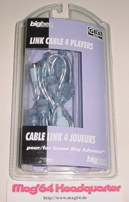 | Mit der Firma BigBen steigt die nächste Firma in das Link Kabel Geschehen auf dem GBA ein. Dabei ist dies noch die normalste Variante. Denn im Link Kabel Line Up findet man daneben auch ungewöhnliche Varianten wie die Tests dazu zeigen. Die 4 Players Variante dient natürlich dazu maximal 4 GBA Spieler zu verbinden. Ausgehend von 1 Weiche gehen dabei alle 4 Stränge ab. Auch als ganzes gehalten dürfen auch 2 oder 3 Spieler an den Start gehen. Das im silber Look gehaltene Kabel bietet wie die Konkurrenz ebenfalls beschriftete Stecker für jeden einzelnen GBA Linkport in der Runde. Auch scheint man sich in der Länge der Kabel mittlerweile auf ein Gardemaß geeinigt zu haben. Denn wie die Konkurrenz bietet das Kabel mit 80cm für einen einzelnen Strang ausreichend Platz. 1,60m für 2Player Action sind mehr als OK. Die 3m Angabe auf der Packung ist da ein wenig irreführend. Auch die Anmerkung das Kabel wäre abgeschirmt ist eher als Info gedacht. Wirkliche Probleme in dieser Hinsicht gab es mit keinem Kabel bisher. Wer auch GBC Geräte linken will ist hier fehl am Platz. Dieses Link Kabel ist einzig für den GBA gemacht. Mehr ein weiteres Kabel, das keine Schwächen zeigt und sich in die Reihe der 4Player Kabel einreiht. | ![]()