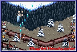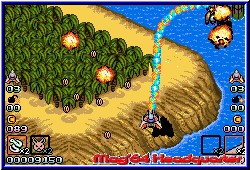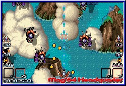 Dabei ist es das Ziel diesen zu erreichen, in dem man vorher überlebt und soviele wie möglich Gegner erledigt. Dabei stehen dem Spieler neben einer Primärwaffe und einer Sekundärwaffe die man per R wechseln kann auch Smart Bombs zur Verfügung. Wie es sich für einen Shooter dieser Art gehört bietet das Spiel Power Up's mit denen man sein Arsenal aufrüsten kann. Nach dem Ableben der Gegner schwirren diese in der Gegner herum und man sollte sie aufsammeln. Von einfachen Verdopplungen der vorhandenen Waffen bis zu Bildschirm leerenden Plasma Blaster. 5 dieser Upgrades gibt es, die man bei einem Treffer auch wieder verliert. Es reicht im allgemeinen ein Treffer und man verliert sofort ein Leben. Danach geht es an der gleichen Stelle allerdings wieder weiter. Verbessern kann man seinen Gleiter auch über Items die man neben den Waffen aufsammeln kann. Auch hier 5 davon vertreten wird so euer Schild verstärkt und hält z.b. 3 Treffer aus. Euer Speed wird erhört oder Ihr bekommt ein Leben oder eine Bombe neu dazu. Das aber selbst dies kaum reicht merkt der Spieler sehr schnell. Innerhalb des scrollenden Screens könnt Ihr den Gleiter in alle Richtungen bewegen, was sehr gut von der Hand geht. Allerdings schwirren euch teilweise soviele Geschosse um die Ohren, das man sehr leicht mal den Überblick verliert. Eines muß man aber den Entwicklern hier zu gute halten. Technisch eines der besten GBA Spiele. Da kann noch soviel auf dem Screen los sein. Engine Probleme gibt es keine. Dazu eine sehr gute und detaillierte Grafik, die klar zur Oberklasse auf dem GBA gehört. Sehr viele Effekte, bewegliche Gegner und auch Bodeneinheiten die einem noch zusätzlich zu schaffen machen. Dazu ist jedes Level anders designt. Mal geht es über grüne Landschaften, Seen oder Wüsten bis hin zu dunklen mystischen Bereichen. Hier macht dem Spiel so leicht keiner was vor. Nur hat man meist kaum Zeit darauf zu achten, da das Game dermaßen schwer ist das man oft nicht mehr weiß welches Geschoß vom eigenen und welches vom Gegner kommt. Das gilt auch für die Endgegner. Bildschirmfüllende Schlachtschiffe aller Arten warten hier. Meist muß man erst reichlich Geschütze wegballern ehe man sich dem Kern nähern kann. Dazu Ausweichen ohne ende und auf die Gegenattacken warten. Nach jedem Level gibt es einen Score und eine Bewertung. Tja und hier fehlt mir die Speichermöglichkeit. Macht man den GBA wieder aus beginnt man von vorn. Sehr schade. Denn eine weitere Stärke das Spiels ist der Mulitplayer. Diese ganze Action der 8 Level ist auch zu zweit spielbar. Nebeneinander und halt jeder auf seinem Screen. Beide Spieler brauchen die komplette Ausstattung. |