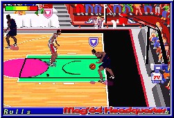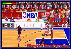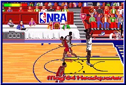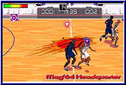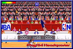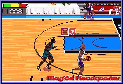 Weitere Parallelen zum realen Vorbild sind die Punkte. 2 und 3 Punktewürfe sind möglich und natürlich die Shot Clock von 24 Sekunden. Weitere Regeln gibt es nicht. Aus werfen geht nicht da der Ball wie von einer Bande abprallt. Hier aber nicht mal schlecht. Spielzüge mit der Bande sind so möglich. Desweiteren gibt es keine Rückpass- oder 5 Sekunden Regel. Ziel ist es natürlich Körbe zu werfen. Dabei läuft man zum gegnerischen Korb und kann entweder selber abschließen oder versuchen spezielle Würfe mit dem Team Partner zu bringen. Lange aufhalten tut man sich nicht. Was auffällt ist das viel gefoult wird, was aber nie geahndet wird. Auf Normal tun dies auch die Gegner reichlich. Kleine Macken hat das Spiel hier aber mit denen man sich anfreunden muß. Foult man einen Gegner und der Ball fällt auf die rechte Seite des Gegners und man selber steht links muß man erst um ihn herumlaufen um den Ball zu bekommen. Auch sind Pässe in diesem Spiel äußerst leicht abzufangen. Das geht mir manchmal zu leicht. Werfen könnt Ihr von allen Positionen des Feldes aus. Ist eure Speed Leiste noch gut gefüllt könnt Ihr auch von der Mittellinie versuchen abzuspringen um einen Dunking zu landen. Das ist eben typisch Jam. Blöcke klappen höchst selten. Aber auch bei den Gegnern. Dafür sind Rebounds nicht unwichtig. Paßt Ihr z.b. einen Ball zum Mitspieler der nicht von euch aktiviert und gesteuert wird, was unter dem Korb schnell passiert, führt er Aktionen selbsständig aus. Das Spiel ist so sehr schnell. Auch Sprünge sind natürlich immens hoch und der Bildschirm muß schonmal 2 Etagen nach oben, was ebenfalls mehr als typsich ist für die Jam Reihe. Hat man sich ein wenig mit der Steuerung angefreundet kann man ein Season Game beginnen. 28 Spiele liegen vor euch ehe es in die möglichen Play Offs geht. Vor dem Spiel und nach jedem Quarter könnt Ihr wechseln. Per Auszeit auch mitten im Spiel. Alle Spieler sind original und besitzen verschiedene Eigenschaften, die aber nicht so wichtig sind. Man schafft auch mit Shaq mehr als genug 3er. Was mir ein wenig fehlt ist der Statistikpart. Zwar werden Punkte und Rebounds im aktuellen Spiel angezeigt, aber eine übergreifende Saison Statistik gibt es nicht. Einzig gewonnene und verlorenene Spiele werden euch präsentiert. Natürlich hängt dies auch mit dem fehlen einer Batterie zusammen, mit der dies möglich wäre. Hier gibt es nach jedem Spiel ein Paßwort. Der Playoff Modus bringt euch gleich in die KO Action. Best of Spiele gibt es nicht. Ein Spiel pro Gegner und man rückt entweder vor oder scheidet aus. Gewinnt man die Meisterschaft gibt es eines der beiden geheimen Teams. Der Jam Modus bringt das ganze noch etwas intensiver. Hier kommt wie übrigens auch im Season Spiel der brennende Ball in's Spiel. 3 Körbe ohne Gegner Treffer und euer Team ist On Fire und treffen wesentlich besser. |
