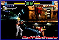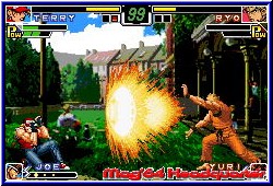 Was etwas ungewohnt wirkt ist die etwas abgehackte Animation. Das Spiel hat keine Slowdown Probleme oder gar Ruckler, aber man merkt das die Moves immer im Millisekunden Bereich vonstatten gehen. Nicht flüssig in einem Guß, sondern so etwas steif. Etwas das auf dem GBA noch nicht ganz optimal funktioniert. Die Kollisionsabfrage ist sehr gut. Grafisch dagegen wirken alle Locations etwas dunkel und farbarm. Dafür wissen die Effekte zu gefallen, die von einfachen Treffereffekten bis zu Special Moves reichen, die sich über den gesamten Screen bewegen. Unterschiede in den Spielmodis findet man im Single, Team und Survival Modus. Kämpft man im Survival Modus gegen alle im Spiel befindlichen Charaktere entweder nach Zeit oder im Endlos Modus könnt Ihr im Single Play ein Art Turnier spielen und tretet gegen 7 Charakter plus 2er Endgegner an. Hier zeigt das Spiel ein Schwäche in meinen Augen. Das Spiel entwickelt wenig Story und somit Bezug zu den Charakteren. Trotz gelungener Kampfaction will da der finale Funken nicht so richtig überspringen. Es gibt lediglich ein paar Texteinblendungen und Sprüche wie "Ich komme wieder" sollen den Spieler zum weiterspielen veranlassen. Für die Langzeit Motivation bietet sich der Mulitplayer wesentlich mehr an, da die Kampfaction hier bei menschlichen Spielern ausgewogener ist. Denn auch auf Normal schafft man das Spiel locker innerhalb einer Stunde im Turnier. Hier bietet der Survival oder Team Modus mehr in Sachen langer Spielzeit. Im Team Modus spielt Ihr jeweils in einem Team aus 4 Kämpfern, wobei auch hier wieder ein Striker dabei ist. Danach auch hier das gleiche Spielsystem wie in anderen Spielen. Ist der jeweils erste Teamspieler geschlagen rückt der nächste nach bis niemand mehr da ist. Der Mulitplayer läßt euch ebenfalls im Single Play gegeneinander antreten oder in den jeweiligen Teams. Dabei benötigen aber beide Spieler jeweils eine komplette Ausstattung um loslegen zu können. King of Fighters ist ein Spiel das eigentlich zufriedenstellt. Vor allem im Gameplay macht es Punkte. Auch wenn die Bewegungen nicht ganz flüssig sind. Dafür läßt es in meinen Augen im Background federn, was aber auch an den unbekannten Charakteren für Nintendo Spieler liegen kann. Zu einem Ryu, Blanka oder Vega hat man doch mehr Bezug. Grafisch wäre ebenfalls ein wenig mehr drin gewesen, wobei man unterscheiden muß zwischen Backgrounds und Effekten die gut gelungen sind. Der Sound ist passend actiongeladen, bietet aber nichts weltbewegendes für den GBA Spieler. Ein Spiel das von der Steuerung und dem Gameplay überzeugen kann, aber dem beim drumherum etwas fehlt. Wer dagegen mit dem GBA Mulitplayer Gefechte austragen kann ist hier sehr gut bedient. |