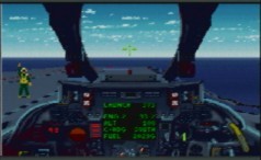 Vor jeder Mission bekommst du Anweisungen, was zu erledigen ist. Es werden die Anzahl der gegnerischen MiG Flugzeuge, Panzer und U-Boote angezeigt, wobei es alle MiGs zu vernichten gilt. U-Boote und Panzer aber lassen sich nicht abschießen und sind nur als zusätzliche Gefahr durch Raketenbeschuss zu beachten. Der 3D Effekt sieht recht gut aus, allerdings ist die Optik sehr detailarm. U-Boote, Schiffe, Gebäude und Panzer werden erst gar nicht angezeigt, man kann sie nur über das aufrufbare Radar erkennen. Daher kann man sie auch nicht abschießen, sondern nur deren Raketen ausweichen. Das Radar ist zudem der wichtigste Bestandteil des Spiels. Dort wählt man das Ziel an, passt die Flugrichtung an und kehrt zum Spielbildschirm zurück, um dann den gegnerischen Flieger mit der Bordkanone oder mit Raketen zu zerstören. Es gibt vier Raketenvarianten, drei sind für das Zerstören der Fliger bestimmt, der Gebrauch der vierten Rakete wird gleich beschrieben. Ein kleines Display, das sich am Cockpit befindet, dient zudem als Zielhilfe. Auf diesem Display kann man auch seinen Treibstoffvorrat, Flughöhe, Flugrichtung, Geschwindigkeit, etc. erkennen. Im Cockpit werden auch außerhalb des Displays Informationen wie Fluglage oder Temperatur der Bordkanone angezeigt. Im Spiel gibt es neben dem zerstören feindlicher MiGs noch 2 weitere Aufgaben. Man muss zu einem Sammelpunkt fliegen und dort eine Tomahawkrakete zünden, die dann ein bestimmtes Ziel zerstört. Je nach Schwierigkeitgrad geschieht das Zünden der Rakete nach dem Abfeuern automatisch, oder man muss sich manuell darum kümmern, wenn sie nahe genug am Ziel ist. Die letzte Aufgabe, mit der man in einer Mission konfrontiert werden kann, ist das Zerstören bestimmter Ziele wie Schiffe, Flugzeuge oder Gebäude per MG. Das besondere an dieser Aufgabe ist, dass bei Annäherung des Ziels das Bild wechselt und man nur noch das spezielle Ziel vor Augen hat. Jetzt muss man bestimmte Punkte, wie z.B. die Triebwerke bei den Flugzeugen, beschießen und somit das Ziel zerstören. Danach wechselt man wieder im normalen Flugmodus.