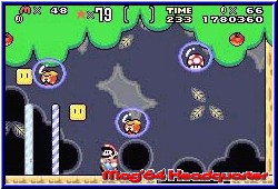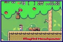 Was zum ersten neu sein sollte ist das Mario nun nicht mehr der einzige ist der die gute Peach retten darf. Luigi ist als spielbarer Charakter enthalten. Auf der Levelkarte kann man per R Taste zwischen beiden wählen. Unterschiede gibt es genug zwischen beiden. Denn Luigi hat die original Steuerung von Mario Advance 1 bekommen. Das heißt er springt zwar höher, aber wesentlich träger. Auch sein Einsatz von Items und später dem agieren mit Yoshi ist anders als bei Mario. Wobei das so wichtig nicht ist. Ich habe Luigi einzig mal zum testen genommen. Mario ist der Boss. Das schöne an diesem Game sind seine vielen Überraschungen und versteckten Dinge. Das beginnt schon bei der Levelkarte selber. So gibt es von den Leveln viele verschiedene. Einfach Jumper Level, Level die als roter Punkt gekennzeichnet sind und mehrere Ausgänge haben sollten, dazu natürlich die Castles mit den Endgegnern sowie die Spukhäuser und weitere Überraschungen. Die Level müssen dabei in linearer Reihenfolge gespielt werden, bieten aber zwischendurch auch die Möglichkeit abzuzweigen und vor allem neue Wege zu finden. Insgesamt sind es 96 Level in 8 Welten plus zu findender Geheimwege. Man drückt auf der Levelkarte eine Richtung und den A Knopf wenn Mario und Luigi auf einem Level stehen. Danach kann man die eigentliche Action beginnen. Alle Welten unterscheiden sich in ihren Designs und Bauten teils extrem voneinander, was vor allem spielerisch sehr viel Abwechslung in das Spiel bringt. Dabei macht der Spieler schnell Bekanntschaft mit typischen Mario Jumper Features. Zunächst ein Wort zur Steuerung, die komplett 1:1 übernommen wurde und in meinen Augen kaum besser zu machen ist. Was übrigens auch für die Vertonung gilt, an der man Gottseidank nicht gedreht hat. Sprünge sind timebar und man kann den Charakter auch in der Luft lenken. Dazu kommen die vielen Zusatzfähigkeiten die jeder Nintendo Spieler eigentlich kennt und was ja auch den Namen Super erklärt. Im Urzutand kommt Mario als kleiner Hans Wurst daher. Da auch hier keine Lebensleiste existiert reicht ein Treffer oder Fehltritt um ein Leben zu verlieren. Findet Mario aber ein Fragenzeichen Block erscheint als erstes Power Up der bekannte Pilz, der ihn zum Super Mario macht. Er kann einen Treffer einstecken ohne gleich draufzugehen. Danach folgt die Feuerblume, die Mario 2 Treffer einstecken läßt und kleine Feuerkugeln auf die Gegner losläßt. Nur in diesem Spiel vorhanden ist die 3. Variante - die Feder. Hat Mario dieses Power Up kann bei gedrückter B-Taste rennen und in der Luft mit Tastenbewegungen fliegen. Das sogenannte Cape, das mich manch Nerven kostete. Schon damals. Nicht weil es schelcht zu steuern war, sondern weil man teilweise nur per Flug Action bestimmte Geheimwege fand. |