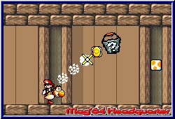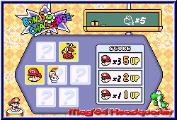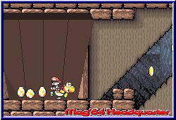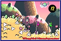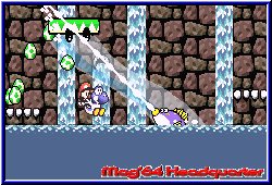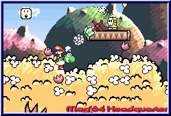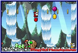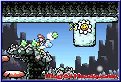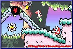 In den Leveln selber erwartet euch was die reine Jumper Action angeht neben gewohnten Dingen halt viele neue Sachen, welche eben durch das Eier Feature erklärt werden. Es fliegen kleine Fragezeigen Wolken herum die man anschießen sollte und die mal Items oder auch Schalter freigeben. Dazu Schlüssel, rote Münzen oder auch Extraleben. Ihr müßt euch Wege freischießen an Ketten hängende Stopper nach oben bewegen in dem man die Achse im richtigen Winkel anschießt und somit die Kette nach oben bewegt. Dazu Gegner fressen um für Eier Nachschub zu sorgen und dabei nicht das springen außer Acht lassen. Sich verformende Plattformen nutzen oder eben kleine Rätsel lösen um vielleicht im linken Teil eines Levels einen Weg zu öffnen, der erst im rechten Teil begehbar wird. Dazu verschlossene Türen und reichlich Geheimgänge und die Mario typischen Röhren. Gerade was die Abwechslung angeht bietet das Spiel noch mehr als Super Mario World. Mit der äußerst exakten und weichen Steuerung macht das ganze mit der Zeit immer mehr Spaß. Verliert man dann auch noch Mario, wobei es auch Gegner gibt die euch den kleinen Kerl vom Rücken klauen und Ihr hinterher müßt als gäbs kein Morgen kommt reichlich Hektik auf. Aber auch das ist noch lange nicht alles in diesem wirklich sehr gelungenen Game. Es gibt Abschnitte in denen Yoshi mit Mario auf dem Rücken garnicht weiterkommt. Hier bieten euch die Entwickler die Möglichkeit Mario abzustellen und Yoshi in verschiedene Dinge zu verwandeln. Mal als U-Boot unter Wasser, als Helicopter oder als Wühlyoshi müßt Ihr euch durch dem Vehicle angepaßte Wege schlagen. Das ganze zeitich begrenzt findet man am Ende einen Mario Block und wird wieder mit Mario vereint. Auch hier darf man sich vom putzigen Anblick des verwandelten Yoshi nicht täuschen lassen. Trödeln darf man auch hier nicht um diese Abschnitte zu durchqueren. Desweiteren ist das Ende eines Levels immer gleich. An einer Kreisanzeige die unaufhörliche Runden dreht werden eure im Level gefundenen Blumen sichtbar. Springt Ihr an eine solche Blume und der Kreis stoppt dürft Ihr eine von mehreren Bonus Challenges spielen. Diese bieten z.b. Mini Games wie Karten Pärchen aufdecken. 3 Fehlversuche zur Verfügung müßt Ihr versuchen die richtigen Pärchen zu finden. Vorteil dieser Mini Games ist das Ihr die aufgedeckten Inhalte als anwendbare Items bekommt. Im Falle von Extra Leben natürlich in diese Anzeige. Habt Ihr z.b. das Kartenpärchen mit der Eier Anzeige aufgedeckt könnt Ihr im nächsten Level per Select dieses Item anwählen und bekommt so auf die schnelle 6 Eier angehängt. |