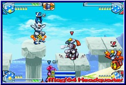 Was aber auch Level 1 und ein neuzuweisen der Tafeln nach sich zieht. Krönung des ganzen ist dann ein Sieg gegen einen der Turniergegner. Schafft man dies bekommt Ihr sogenannte Medaparts, was nichts anderes sind völlig neue mechanische Teile und euren Mech neue Fähigkeiten und Waffen spendiert. 120 dieser Teile kann man erspielen, welche die Reichweite erhöhen, den Speed pushen und natürlich vollkommen neue Waffensysteme beinhalten. Allein diese Möglichkeiten reichen mehr als aus um Stunden zu verbringen. Eine der Stärken des Spiels. Denn sehr viele Kämpfe werdet Ihr wiederholen müssen weil man einfach erst mit der Zeit stark genug ist um zu bestehen. Ein Vergleich als wenn man mit einem Level 30 Glurak gegen ein Level 100 Mew spielt. Weit hergeholt aber passend. Grafisch und vom Sound ein gelungenes Spiel, das unterschiedliche Location bietet mit verschiedenen Backgrounds, die ebenfalls auf die Kampftechnik Auswirkung haben. Auch technisch sehr gut. Kein Ruckeln beim teilweilse schnellen Scrolling. Aber auch ein Negatvipunkt, das die Action ab und zu in wildes Gekloppe ausartet in der man auch mal die Übersicht verlieren kann. Sicher auch Geschmackssache das man nur von Kampf zu Kampf geht und keine Story vorfindet. Was die beiden Versionen angeht so findet man auch hier Unterschiede. Zwar die gleichen Locations findet man andere Megparts und Medaillen in den beiden Versionen. Diese kann man nun ähnlich des Pokemon Feature tauschen. Desweiteren kann man mit seinen entwickelten Megabots auch gegeneinander antreten. Feature die sicher ihre Zielgruppe finden werden. Auf jeden Fall ist die Rokushu Version die leichtere von 2 anspruchsvollen Spielen. Während die Metabee Version eher was für Spieler mit Frustfell ist.Wem das Gelaufe und Gesuche eines Golden Sun oder Breath of Fire zuviel ist und sofort in Echtzei tloslegen will für den ist das Spiel richtig. Wer aber eine Story will und Gegenden erkunden ist hier falsch. 2 trotzdem spannende Spiele die Spaß machen und vor allem lange vor den Screen fesseln.