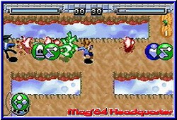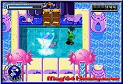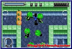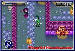 Das Spiel gestaltet sich nicht sonderlich komplex, sprich, schon nach kurzer Zeit ist klar, um was es im Spiel geht. Euren Charakter seht Ihr von schräg oben und steuert ihn per Steuerkreuz durch die meist verwinkelt aufgebauten Areale, die auch von Level zu Level keine großartigen Unterschiede seitens der Levelgestaltung sowie des Designs bieten. Innerhalb dieser begegnen Euch, meist ohne sonderlich große Pause, Dutzende von Monstern. Meist handelt es sich dabei um Kürbiswesen in unterschiedlichsten Ausführungen, die von Euch zu Kürbisbrei verarbeitet werden wollen. Um ihnen diesen Gefallen zu tun, sind Eurem "Assistenten" drei Schussarten bekannt, mit denen er den Kürbisköpfen und Co. auf die Pelle rücken kann. Der einzige Nachteil ist, dass bestimmte Feinde nur auf bestimmte Schüsse reagieren. Einige Feind können zwar auch durch unterschiedliche Schüsse verletzt werden, die Effektivität ist dann je nach Schussart aber verschieden. Zu den Schüssen selbst gibt es nicht viel zu sagen: Zum einen gibt es den normalen Schuss, der zwar die geringste Wirkung hat, aber am einfachsten auszuführen ist. Der "Kombi-Kraft"-Schuss hingegen ist schon um einiges effektiver, jedoch muss man - um diesen auszuführen - den "B"-Button eine gewisse Zeit gedrückt halten. Der stärkste Gegner eines jeden Kürbiskopfes ist jedoch der Dreifachschuss, der meist schnell wirkt und jene bösen Kürbisköpfe auf schnellstem Wege auf den Kompost befördert. Bestückt mit diesem "reichhaltigen" Waffenangebot kann man sich dann ja mal auf den Weg machen... Unterstützend zu Euren Schüssen, wirken die verschiedenen "Werkzeuge", die man entweder innerhalb der Levels oder am Ende eines Abschnitts in "Igors Laden" käuflich erwerben kann. Jeder Charakter darf höchstens vier Hilfsmittel bei sich haben (kann man innerhalb eines Levels beliebig einsetzen), wobei es diese wiederum in unterschiedlichen Farbvarianten gibt. Je nach Farbe ist die Wirksamkeit unterschiedlich, wobei rot für Level 1, blau für Level 2 und grün für Level 3 steht. An Hilfsmitteln findet man von Gesundheitsicons über Magnetschüsse, Bomben bis hin zu Köder und Geheimnisringen eine Vielzahl an Utensilien. Selten kommt der Spieler auch in den Besitz eines schwarzen Werkzeugs, dass eine gewisse Fähigkeit dauerhaft verbessert. Neben den Werkzeugen, die in der Regel nur einmal anwendbar sind, sind Relikte die zweite Kategorie an unterstützenden Hilfsmittelchen. Ebenfalls nur vier gleichzeitig, gibt es auch diese in den drei bekannten Farbausführungen. Normalerweise wirken Relikte auf Dauer und sind erst nachdem man sie abgelegt hat, unwirksam. Da Relikte insgesamt bedeutender sind als Werkzeuge, ist der Preis auch meist um einiges höher. |