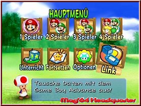 Lange hat man darauf gewartet das man diesen Link endlich nutzen konnte. Auch ich persönlich habe mir davon doch noch einiges versprochen. Gerade im Hinblick auf die GCN Version. Und zumindest von dieser Warte her wurde man nicht enttäuscht. Man könnte nun fast schon sagen schade das beide Versionen nicht gleichzeitig erschienen sind oder zumindest anders herum. Denn den größeren Nutzen durch den Link hat man praktisch auf dem GCN, auch wenn auch die GBA Version Vorteile aus dem Link zieht. Nintendo bringt mit dem Link zwischen der GBA und GCN Version die Version mit beiden Spielen in's Geschäft. Grob gesagt werden Inhalte auf beiden Versionen durch einen Link freigeschaltet und Charaktere getauscht, wobei hier der spielerische Ansatz auf dem GBA beginnt. Denn will man es richtig machen sollte man eigentlich zuerst die GBA Version ausgiebig spielen. Alles beginnt damit das man auf dem GBA seinen Story Charakter entwickelt und dessen Werte nach oben pusht. Anfangs nehmen sich die Stats des Story Charakters in der GBA Version und den auf dem GCN nichts und sind eigentlich alle unterdurchschnittlich entwickelt. Habt Ihr aber den GBA Charakter auf Level 30 und höher gepusht macht der Link so richtig Sinn. 2x den Abspann auf dem GBA gesehen und Mario dort besiegt sollte man das GBA-GCN Linkkabel hervor kramen. Angeschlossen an den GCN am Port 2 schaltet man so überhaupt erstmal den Link Modus frei. Links unten auf dem GCN Hauptmenu erscheint nun der Menupunkt GBA Link. Verbindet man nun die GBA Version damit wird der Link erkannt und Inhalte werden automatisch hin und her transferiert. Wer sich auf dem GBA fragt wie man auch die letzten Bonus Grüns der Star Kurse bekommt wird hier die Antwort finden. Bestimmte Grüns sind nur über den Link freischaltbar. Die richtig große Nutzen entsteht aber wie schon erwähnt über den Charaktertransfer. Schickt Ihr also euren Level 30 oder höher Charakter vom GBA auf den GCN wird dort in der Spielerwahl das Feld um die GBA Charaktere erweitert. Dabei bringt er alles mit was Ihr auf dem GBA erspielt habt. Also auch neue gemachte Schläger sind mit dabei. Mit diesem Charakter, der nun fest auf dem GCN sitzt ohne dabei vom GBA verschwunden zu sein könnt Ihr nun alle Spielmodi angehen und man merkt das vor allem die letzten beiden Kurse viel leichter zu spielen sind. Die ersten Kurse sind da fast schon wieder zu leicht. ;-) Da man diesen Charaktertransfer jederzeit machen kann und so auch sämtliche Arcade Modi mehr Spaß machen ist dieser Link einer der sinnvollsten. Vor allem für GCN Spieler. Das er dadurch auch für eine Wertungserhöhung der GCN Version sorgt kommt positiv dazu. Belohnungen auf dem GBA durch den GCN-Link: