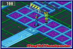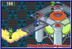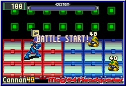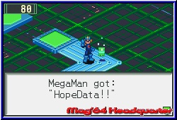 Meist kündigt sich ein Problem auf der normalen Welt an, das seinen Ursprung in einem Virus hat. Durch den Wechsel dorthin kann der Spieler diese Probleme lösen und im Spiel vorankommen. Allerdings ist das eine äußerst grobe Erklärung des Spielprinzips. Das erneut an eine RPG angelehnte Spielprinzip besteht als zahlreichen Facetten, die vom Sammeln bestimmter Objekte, dem Entdecken zahlreicher Locations und natürlich den Kämpfen besteht. Innerhalb der normalen Welt kann der Charakter mit anderen Personen reden, Gebäude betreten und so Neuigkeiten erfahren. Ist irgendwo ein Problem aufgetaucht muß man einen Jack-In Port Port finden und beamt sich nun in die tiefen des Internet. Hier wechselt der Grafikstil erneut völlig. Technische und farbenfrohe Umgebungen, in denen man die Datenströme wie Wege benutzen kann. Darauf laufend lauern Gegner, die in der Art eines Pokemon Spiels plötzlich auftauchen und den Spieler zum Kampf fordern. Ihr läuft nach wie vor in der schräg von oben Sicht bis Ihr auf Gegner trefft. Das Bild wird dunkel und eine 2D Arena erscheint. Diese ist zunächst in 2 Teile geteilt. 9x9 Felder liegen sich gegenüber, wobei Mega Man alle 9 linken Felder nutzen kann und die Gegner die rechten 9 Felder, die sich auch farblich unterscheiden. In diesem Modus besitzt unser Held auch alle Eigenschaften eines RPG. Er hat eine Levelstärke, Fähigkeiten in Sachen Angriff oder Verteidigung und natürlich zahlreiche Hilfsmittel in Form von Aktionen, Waffen und Moves. Ziel ist es in jedem Kampf alle Gegner zu erledigen. Dabei besitzen diese wie auch Mega Man einen HP Wert der über den Gestalten zu sehen ist. Ihr müßt nun versuchen diesen Wert auf 0 zu bringen. Jetzt beginnt so langsam der Tiefgang des Spiels. Es gibt im gesamten Spiel 250 verschiedene dieser Aktionen, Waffen oder Moves, von denen Ihr zu beginn nur knapp 10 besitzt. Im ersten Teil waren es noch 175. Hier hat man also einiges neues inplementiert. Hier im Spiel auch Chips genannt. Das können Bomben sein, Mehrfachgeschosse, Laser oder Schwerter. Jedes dieser Dinge hat einen Angriffswert. Die Bombe z.b. 50, die einem Gegner wenn man ihn trifft diese Zahl abzieht. Innerhalb der 9 Felder könnt Ihr Mega Man.Exe steuern, sowie auch die Gegner versuchen durch umherlaufen euch zu treffen oder auszuweichen. Es gibt auch feststehende Gegner wie Geschütze, die zumindest so relativ leicht zu treffen sind. Kommt es zum Kampf besitzt Ihr oben eine Energieleiste die sich nach jeder Aktion auffüllt. Ist sie voll könnt Ihr per L oder R Taste das Aktionsmenu aufrufen. In diesem Aktionsmenu stehen euch nun jedesmal diese Waffen (Chips) zur Verfügung. Dabei wählt man eine aus, von der man sich Erfolg verspricht und kann sie dann einmal anwenden. Es gibt dabei Unterschiede. Artverwandte können mehrmals gleichzeitig genutzt werden, während verschiedene erst später funktionieren. Anfangs könnt Ihr aus 5 verschiedenen auswählen, was sich mit der Zeit auf 15 ausweitet. Gehören die Aktionen zur gleichen Klasse wie z.b. verschiedene Arten von Bomben könnt Ihr auch mehrere auf einmal auswählen. |