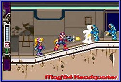 Capcom's spezielle Spielfigur Mega Man hat mittlerweile schon eine bewegte Vergangenheit hinter sich. Auf allen möglichen Plattformen zuhause war er bis zur Geburt des GBA eigentlich ein Sinnbild für Jump'n Shoot Action a la Probotector. Erst mit dem GBA und der Battle Network Reihe packt man ihn in ein neues Spielprinzip. Trotz ansprechendem Gameplay wünschten sich viele Spieler auch den alten springenden und ballernden Mega Man zurück. Capcom erhörte die Fans seines Helden und präsentiert mit Mega Man Zero das Spielprinzip früherer Jahre. Springend und ballernd gegen Horden von Gegnern. Dabei hat Zero auch eine mittlerweile lange Story Geschichte hinter sich, die auch auf dem GBA fortgeführt wird. Hintergrund ist hier das Ende des Jahrhunderte langen Reploid Krieges, den Mega Man X seinerzeit beenden konnte. Die Welt begann sich zu erholen und die Stadt Neo Arcadia wurde als Zentrum des Wiederaufbaus geschaffen. Trotzdem wurde das Mißtrauen der Menschen gegen die Reploids nie ganz abgelegt und es kam wie es kommen mußte. Die Reploids wurden wieder schikaniert und es begann eine regelrechte Jagd auf sie und ihre Lebensräume. Nur wenige konnten flüchten, unter ihnen die Wissenschaftlerin Ciel. Fast Ausweglos in die Enge getrieben erinnerte sich Ciel an eine Legende. Seit 100 Jahren soll ein legendärer Reploid namens Zero in den Ruinen in der Nähe der Stadt im Tiefschlaf liegen. Nur er kann die Reploids retten. Heroisch wie immer in solchen Spielen sollte es der guten Ciel natürlich gelingen Zero zu finden und der Spieler übernimmt nun das Kommando. Das Hauptmenu des Spiels bietet euch lediglich die Punkte Start oder Continue. Im komplett englisch gehaltenen Spiel stehen euch 3 Speicherplätze zur Verfügung, die hier auch sinnvoll sein sollten. So erlebt der Spieler nach dem Start nochmal die Story und das finden des Zero Reploids. Mega Man ist geboren und es wird zurückgeschlagen. Der Spieler darf hier äußerst schnell Hand an den Helden anlegen. Als erstes muß man eine Basis finden die als Ausgangspunkt für das gesamte Spiel dient. Hier bekommt man einen ersten Eindruck über den spielerischen Part des Spiels. In reinem 2D gehalten bewegt man Mega Man durch die Locations. Wie ein Jump'n Run gilt es laufend und springend Hindernisse und typische Jumper Einlagen hinter sich zu bringen. Die Steuerung ist dabei sehr schön gelungen. Mega Man steuert sich sehr weich und ist auch in der Luft steuerbar. Per L-Taste kann man ihn beschleunigen und damit einen weiteren Sprung machen. Mit der B-Taste feuert Mega Man seine Primäre Waffe, einen Laser ab, während mit der etwas umständlichen Tastenkombination B+R-Taste die Sekundärwaffe benutzt wird. Meist als Nahkampf Attacke wie verschiedene Schwert Moves.