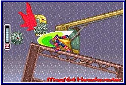 Neben Soldaten sind dies oft Geschütztürme, andere Roboter die mal in der Luft oder am Boden attackieren. Glücklicherweise findet man ausreichend Power Ups wie Health Pakete um nicht frustriert den GBA beiseite zu legen. Daneben auch kleine Kristalle, die ab einer bestimmten Menge Extra Versuche ermöglichen. Es gibt im Spiel in jedem Level Rücksetzpunkte. Verliert man ein Leben beginnt man dort wieder. Erst wenn man alle verliert muß das letzte Savegame bei der guten Ciel wieder herhalten. Meist sind die Rücksetzpunkte vor den Endgegnern jeder Mission platziert, was auch seinen guten Grund hat. Denn diese dürfen wieder als äußerst knifflig bezeichnet werden. Man muß immer wieder an einer neuen Taktik knobeln um die Burschen zu besiegen. Anspruchsvoll, aber lösbar. Schön das hier die Entwicklung des Charakters und seiner Waffen mit der Schwierigkeit der Gegner konform geht und die Gegensätze nicht zu extrem sind. Hat man zu Beginn echt zu tun selbst den ersten Boss zu besiegen wird das mit der Zeit immer besser, ohne aber ein Kinderspiel zu werden. Unterstützt wird das ganze von sehr schönen Effekten. Seien es die Ballereffekte, einsetzendes Wetter wie Regen oder Stürme oder die Levelbauten selber. Mal in den Ruinen geht es z.b. auch in Wüstengegenden zur Sache. Schön das überall auch neue Gegner vorhanden sind und für Abwechslung sorgen. Schade finde ich das fehlende RPG Feature oder besser gesagt das man nicht direkt sieht wie und wann man sich entwickelt. Erst wenn plötzlich eine Meldung im Screen auftaucht weiß man Bescheid. Der Sound ist passend und actiongeladen und stört den Spielablauf keineswegs. Technisch kann man ebenfalls nicht meckern. Trotz vieler Effekte kommt die Engine nicht aus dem Tritt. Durch die gute Steuerung macht das Spiel viel Spaß, richtet sich aber an die erfahrenen Spieler die mit 2D Shootern ihre Erfahrungen gesammelt haben. Ein Spiel wie es nicht viele gibt auf dem GBA. Sehr schön umgesetzt sitzt man sehr lange dran ehe die Reploids erneut gerettet sind. Fans des alten Mega Man kommen hier auf jeden Fall auf ihre Kosten. Das Beste Spiel dieser Art ist es aber nicht auf dem GBA. Das bleibt CT Special Forces.