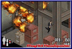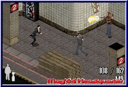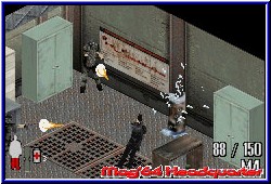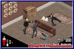 Immer noch besessen von den Ereignissen seinerzeit gelang es ihm endlich in die schlimmste Mafia Familie New Yorks zu gelangen. Von nun an steuert Ihr die Geschicke um eine verworrene, aber gut gemachte Story des Spiels. Vor dem Spieler liegen nun 3 Kapitel mit knapp 15 Leveln die es zu durchqueren geht. Dabei zeigt sich sehr schnell das Gameplay des Spiels, das z.b. auch in einem Bond angewandt wurde. Ihr seht das Geschehen aus der Iso Sicht von oben. Jetzt kommt die angesprochene Steuervariante zum Tragen. Wahlweise könnt Ihr eine 4Way Variante nutzen, bei der Max in die 4 Richtungen läuft die Ihr per Kreuz drückt. Wesentlich besser empfinde ich die freie Variante die Ihr ebenfalls nutzen könnt und Ihr so lauft wie Ihr auch drückt auf dem Kreuz. Dabei ist es egal von welcher Seite die aktuelle Location gezeigt wird. Im Spiel geht es vornehmlich darum zu überleben und Gangster ohne Ende auszuschalten. Im groben also ein reines Ballerspiel, das vom Spieler neben Geschick im Umgang mit Waffen auch diverse Schlüsselrätsel verlangt die es zu lösen gilt. Zunächst wichtig sind die Bildschirmanzeigen. Unten rechts findet man die aktuell gewählte Waffe samt Munitionsanzeige. Im Spiel sind 12 Waffen enthalten, zu denen neben diversen Handfeuerwaffen auch MPi's gehören, Shotgun Varianten, ein Granatenwerfer und andere böse Mittel wie Handgranaten, Molotov Cocktails und ein Baseballschläger. Dabei behält man gefundene Waffen ein Kapitel über und beginnt erst im neuen Kapitel wieder bei Null und muß sich alle Waffen wieder neu "verdienen". Per L-Taste kann man zwischen den Waffen durchschalten, wobei bei einem leeren Magazin in der aktuell genutzten Waffe automatisch die nächstbessere gewählt wird. Aber man hat ja immer so seine Favoriten. In meinem Fall die Shotgun, mit der man die Gegner von seinen Argumenten ausreichend überzeugen konnte. ;-) Links unten ist ein Querschnitt des Körpers zu sehen, der die Energie des guten Max darstellt. Bei Treffern füllt sich diese Anzeige mit roter Farbe und man verliert ein Leben wenn diese komplett gefüllt wird. Mit 3 Leben startet Ihr und werdet beim Ableben im aktuellen Raum wieder abgesetzt. Erst wenn alle Leben verbraucht sind beginnt man ein Level komplett neu. Da man im Level nicht speichern kann sollte man also nicht versuchen durch das Spiel zu rennen. Um Energie wieder aufzufüllen findet man überall sogenannte Schmerzmittel um die Energie per Select allerdings nur teilweise wieder aufzufrischen. Dazu kommen zunächst nur die A-Taste zum feuern und die B-Taste für den Sprung. So läuft man zunächst durch die Gegend, kann Türen automatisch öffnen und per B-Taste bei einem entsprechenden Ort Aktionen ausüben.