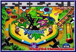 Wer ganz allein spielen muß oder will, der sollte sich den Abenteuer Mode einmal näher betrachten, denn hier muß man zeigen, ob man ein Flipperkönig werden kann oder nicht. Zunächst stehen euch nur der erste Tisch zur Verfügung. Wenn man eine bestimmte Kombi erspielt hat, öffnet sich das Tor zum Tisch zwei und dahin muß man den Ball bringen. Mit dieser Aktion ermöglicht man sich, den Bereich von Miss Piggy zu betreten, wenn man alle Bälle bei Kermit „verlümmelt“ hat. Das selbe Spiel muß man nun bei Miss Piggy absolvieren um an den Tisch von Gonzo zu kommen. Schafft man das auch noch bei Gonzo selbst, erspielt man sich den geheimnisumwitterten Tisch von ???. Na, wenn das keine Herausforderung ist, dann weiß ich nicht. Jedenfalls ist es verdammt schwer zu bewerkstelligen, auch wenn man zwischendurch speichern kann. Doch der Speicherstand verschwindet, wenn alle 5 Bälle verloren gegangen sind. Dann muß man von vorn beginnen. Die Tische von Kermit und Gonzo sind nicht so schwer bespielbar, aber Miss Piggy ihrer, der ist nicht nur „Schweinchen-rosa“ sondern auch noch „Sauschwer“.