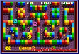 Pac-Attack dagegen ist ein reiner Puzzle Mode, der euer Reaktionsvermögen auf eine harte Probe stellt. Es gibt den „Normal Mode“ und den „Puzzle Mode“. Diese unterscheiden sich darin, das der Puzzle Mode 100 Level bereithält, wenn du die Vorgabe schaffst. Im Normal Mode fallen die Blöcke solange, bis du dich zugebaut hast. Hier kann man auch am Highscore feilen. Im Normal Mode gibt es auch eine Auswahl an Schwierigkeitsgraden, die nicht ohne sind. Easy und Normal sind ja noch recht einfach, was sich aber bei Hard und bei Hyper schlagartig ändert. Um halbwegs noch die Kurve zu bekommen, sollte man das Vorschaufenster nicht gänzlich außer Acht lassen. Dieses befindet sich oben links in der Ecke und zeigt die nächste Kombination an. darunter sehen wir die Feenanzeige, die sich jedesmal etwas füllt, wenn Pac-Man ein paar Geister eliminiert hat. Ist sie ganz voll, erscheint eine kleine Fee, die von uns gesteuert alle erreichbaren Geister vernichtet. Damit schafft man ordentlich Platz auf dem Spielfeld. Beim Puzzle Mode fehlt die Feenanzeige, dafür steht dann dort, wie oft noch ein Pac-Man erscheint um alle Geister zu fressen. Ist der letzte Pac-Man durch und es befinden sich noch Geister im Umlauf, ist das Level verloren. Da muß man noch einmal spielen. An der rechten Spielseite sehen wir den Highscore bzw. das momentane Level das wir gerade spielen. Je höher die Level werden, umso schneller fallen die Blöcke herab und das koordinierte ablegen wird schwieriger. Man hat allen vier Spielarten einen odentlich swingenden Sound untergejubelt, der so richtig unauffällig und doch gut ist. Den Wandel der Zeit hat man sehr gut eingefangen, indem man einfach alle Generationen auf ein Modul gepackt hat. So kann auch der jüngste Zocker sehen, unter welchen Umständen wir früher gespielt haben. Pac-Man Collection ist ein richtig gutes Spiel gegen Langeweile. Auch wenn man nicht speichern kann, geben zumindest die Puzzle Mode eine Aufgabe für ein paar Stunden. Denn 100 Level wollen erst einmal erspielt werden! Die Nostalgiker unter euch, die ein zeitloses Game suchen, werden mit Pac-Man Collection gut bedient. |