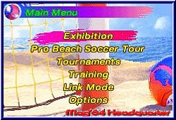Seit der Olympiade 2000 in Sydney haben Sportarten die auf Sand stattfinden weltweit ungemein an Popularität zugelegt. Rückte zuerst Beach Volleyball in den Vordergrund, so sorgt nun auch der Fußball Ableger auf Sand für volle Arenen. Organisiert in der BSWW (Beach Soccer Worldwide) kämpfen seitdem Mannschaften weltweit um Trophäen. Warum das ganze nicht auch spielerisch umsetzen. Nachdem wieder alle Plattformen außer dem GameCube bedacht wurden, darf zumindest der GBA Spieler Hand anlegen. Beach Fußball hat wie andere dieser Sportarten ebenfalls seine eigenen Regeln. Auf einem 28x37 Meter großen Feld wird 5 gegen 5 gespielt, wobei dabei 4 Feldspieler plus 1 Torwart antreten. Es wird über 3 Abschnitte a 12 Minuten gespielt. Dabei darf so oft gewechselt werden wie möglich und ein Unentschieden erlebt der Zuschauer nie. Es wird hier also immer ein Sieger ausgepielt. Soweit eine kleine Einführung in die Regeln von Beach Soccer. Das für 2 Spieler gemachte Game erlaubt auch hier zu Beginn die Wahl der deutschen Sprache, wobei dies in einem Sportspiel sicherlich nicht so wichtig ist. Positiv das im Spiel eine Batterie euer vorankommen sichert. Alles unter einem Profil das der Spieler zu Beginn anlegt. Das Hauptmenu bietet dem Spieler mehrere Punkte an. Neben dem Freundschaftsspiel ist dies die Pro Beach Soccer Tour, der Turnier Modus, das Training sowie der Multiplayer. Dazu kommen die Optionen in denen man unter 3 Schwierigkeitsgraden wählen kann oder die Spiellänge von 3-9 Minuten wählt. Das Training bietet sich bei dieser nicht alltäglichen Sportart an und man macht seinen ersten Kontakt mit der Steuerung und dem hier wichtigen Viewpoint auf das Geschehen. Was den Viewpoint angeht schaut man seitlich in einer schräg von oben Perspektive auf das Geschehen, was sich als recht übersichtlich entpuppt. Auf dem Spielfeld wuseln nun die 4 Feldspieler plus Torhüter herum. Gelungen sind die Animationen der Spieler. Sei es bei eigenen Aktionen wie Pässen, Schüssen oder Fouls als auch bei Reaktionen auf eigene und gegnerische Tore. Sie fassen sich an den Kopf, fallen vor Enttäuschung in den Sand oder jubeln sich einen ab. Viel Liebe zum Detail wurde hier investiert. Die Steuerung besteht aus 2 Grundvarianten, der Offense und der Defense. In der Offense sind die wichtigsten Dinge der Pass mit der B-Taste sowie der Schuß per A-Taste. 2 Dinge die mir beim Schuß gefallen haben. Zum einen könnt Ihr die Power selbst bestimmen. Unten links ist eine Kreisanzeige. Je länger man den Schußknopf drückt um so härter wird der Schuß. Zum anderen kann man die Schußtaste schon drücken wenn man einen Paß empfängt und so praktisch mit voller Wucht an den Ball tritt. Was die Pässe angeht gibt es angenehm viele Varianten. Einfach B drücken und der Ball geht grob zum nächststehenden Mitspieler.