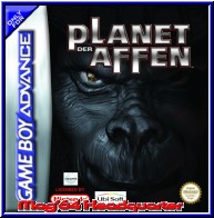 So, der letzte aktuelle Titel der gleich in zweifacher Ausfertigung kommt. ;-) Auch wenn ich mich wiederhole. Auch hier checken wir natürlich zuerst die GBA Version. Planet der Affen ist sicherlich vielen von euch ein Begriff. Die älteren kennen vielleicht noch die Original Fassung, während die jüngeren mit der Neuauflage wohl eher was anfangen können. Hintergrund des Spiels ist nun auch der Film und wie der Titel schon sagt der Planet der Affen. In diesem Spiel übernehmt Ihr die Rolle des USNSA Astronauten Ben. Dieser wird beauftragt auf dem unerforschten Planeten nach seinem Kollegen Taylor zu forschen und ihn zu finden, da er seit einem Besuch dort verschwunden ist. Das einzige was man weiß ist das dieser Planet Menschen wie Sklaven behandelt und die Affen die Herrschaft an sich gerissen haben. Also macht sich der gute Ben auf den Weg..... Was man in letzter Zeit Gottseidank verstärkt feststellt ist die Tatsache das die meisten Games komplett eingedeutscht sind. Auch bei Spielen, die nicht soviel Text haben, wozu auch Planet der Affen gehört. Einzig die kleinen Zwischensequenzen in Form von Standbildern zwischen den Leveln sind mit Text unterlegt. Planet der Affen ist ein Jump'n Run der kniffligen Sorte und ich muß gestehen, das ich Anfangs nicht sehr begeistert war. Aber da man die Spiele ja ein wenig länger testet sollte sich zeigen, das dieses Game trotz kleinerer Kritikpunkte ein überraschend gutes Spiel geworden ist. Ist man bei Lizensspielen weißgott nicht immer gewohnt. Das Hauptmenu ist etwas ungewöhnlich gemacht. Wie bei Donkey Kong auf dem N64 kann man die einzelnen Menupunkte in einem Art Kreismenu drehen. Dazu gehört der Spielstart, die Paßworteingabe, die Credits und die Soundoption. Auch hier muß ich abschließend sagen das es mir der Sound angetan hat. Er ist zwar so gut wie immer gleich, kommt aber sehr mystisch und passend daher. Auch nach Stunden nervt er nicht. Hat man auch nicht so oft. Das Spiel ist eingeteilt in 8 verschiedene Level, die in sich jeweils nochmals in 3 Stage unterteilt sind. Der Spieler hat in jedem Level verschiedene Aufgaben zu lösen. Zunächst einmal einen Endbereich zu finden. Bevor er diesen erreicht kann man kleine Fähnchen einsammeln und versuchen gegnerische Affen zahlreich umzulegen und Items einzusammeln. Sinn hat das ganze für eine Bewertung nach jedem Level. Hier wird euch die Dauer des Spielens, die Anzahl der von 10 möglichen gefundenen Fahnen und die Anzahl der umgelegten Gegner angezeigt. Seid Ihr perfekt gibt es 4 Sternenbanner als Belohnung. Doch davor steht zunächst eine intensive Eingewöhnung mit der Steuerung, die man sich gönnen sollte. Spieler der Tomb Raider Games werden diese wiedererkennen. Sie ist im Gegensatz zu normalen Jumpern unkonventionell gelöst. Mit dem Kreuz wird logischerweise die Richtung vorgegeben.