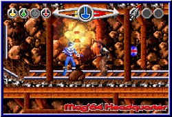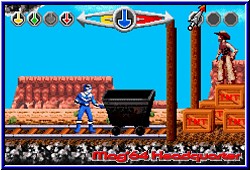 Was die Steuerung angeht nutzt man natürlich das Steuerkreuz für die Richtungen, sowie die B Taste für die Schläge und Tritte, die aber wenig Abwechslung bieten. Schlagen und Treten sind hier nur vorhanden. Mit A wird gesprungen, wobei auch ein Doppelsprung vorhanden ist wenn man in der Luft nochmals A drückt. Das ergibt vor allem in der Höhe neue Möglichkeiten. Die Level sind so vor allem nach oben recht ausladend, ohne aber Stunden vor dem Screen zu halten. Auch hier gleicht es dem guten Spiderman. Das Spielziel selber, das finden des Endgegners schafft man recht schnell. Erst wenn man die Level untersuchen will sitzt man länger. Trotzdem kann man das Spiel an einem Abend locker beenden. Gut gefallen hat mir die Möglichkeit auch hier wieder alle Ranger einzusetzen. Beginnt man beispielsweise mit dem grünen Ranger und die Lebensleiste geht dem Ende entgegen drückt man Select und wählt einen anderen der 5 aus, mit dem dann Punktgenau weitergespielt wird. Sie unterscheiden sich auch untereinander. Der grüne Ranger kann am meisten einstecken, während der gelbe am meisten Wirkung bei den Gegnern erzielt. Verliert man mitten im Spiel doch einmal einen Ranger ist er deaktiviert und kann nur über ein entsprechendes Reaktivierungs Item wiederbelebt werden. Kurios das man dies erst ab dem 4. Level findet. Man rechnet also mit einem guten Spieler. ;-) Ebenso können die Ranger im Spiel verschiedene Special Attacken ausführen. Im Screen habt Ihr oberhalb verschiedene Anzeigen. Links die Symbole der gerade nicht genutzten 4 Ranger, sowie in der Mitte eine Doppelleiste. Rechts der rote Bereich stellt eure Energieleiste dar, während die linke eine Art Powerleiste ist. Mit jedem Schlag den man ansetzt füllt sie sich ein Stück. Ist sie voll blinkt in der Mitte ein Symbol und der Ranger kann seine Special Attacke ausführen. Diese werden rechts oben in den Kreisen dargestellt. Auch diese muß man erst als entsprechendes Item in den Leveln finden. Danach steht euch entweder eine Powerschwert zur Verfügung, eine Schußwaffe oder den Tornadoblitz, der grafisch toll rüberkommt. Viele kleine Explosionen im Screen sorgen für Feindfreiheit. Allerdings gibt es wenige Stellen wo man sie wirklich effektiv braucht. Die Gegner sind zwar zahlreich, aber nicht unbedingt schwer. Auch findet man relativ viele Med Kits um die Energie aufzuladen. Einzig auf Hard wird es etwas kniffliger, ohne aber einen erfahrenen Spieler auf die Probe zu stellen. Für die jüngere Zielgruppe ist der Schwierigkeitsgrad aber ausgewogen gestaltet. Am Ende jedes Levels geht es in einem Endkampf gegen einen Zwischengegner. Auch dieser ist geteilt. Zunächst wie in einem Prügelspiel in einer abgegrenzten Arena. |