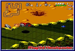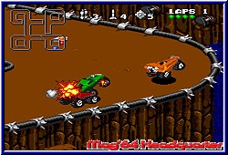 Einzig die Bremse ist durch Kreuz unten etwas ungewohnt. Allerdings braucht man diese eigentlich fast nie. Vom Gas gehen oder Gegenlenken helfen meist auch. Auch eine Stärke, das man mit den Fahrzeugen einen gewissen Drifteffekt spendiert hat, der das Fahrzeug sehr gut steuern läßt. Die anderen Tasten sind ausgenommen A für Gas, einzig für die Waffensystem gedacht. Mit der B-Taste feuert Ihr eure Bordkanone ab, die sich von Fahrzeug zu Fahrzeug unterscheiden. Dazu könnt Ihr mit L und R die Heckwaffe und Energieladungen ablassen. Diese reichen von Nitros bis zu den verschiedensten Minen die man legen kann. Die Rennen fahren sich äußerst flüssig und actionreich. Erreicht wird dies durch viele Punkte. Kommt man von der Strecke ab oder die Panzerung reicht nicht mehr, so wird man nach einer kurzen Pause wieder auf die Strecke gesetzt. Genauso kann man Gegner so eliminieren und sich einen entscheidenden Vorteil sichern. Oben im Screen tauchen nun 4 Anzeigen auf, die sehr wichtig sind. Sie entsprechen in Form der runden farbigen Punkte der Panzerung, sowie in der Mitte der verfügbaren Waffenladungen. Beispielsweise besitzt euer Wagen am Anfang nur ein Rakete pro Runde die Ihr nach vorn schießen könnt. Erst wenn Ihr eine Runde geschafft habt wird diese Anzeige wieder aufgefüllt. Hat man nun nach einigen Rennen einen gewissen Geldbetrag zur Verfügung kann man all diese Ding upgraden. So kann man maximal 7 Raketen mitnehmen oder seine eigene Panzerung extrem verstärken. Natürlich muß man abwägen, was man kauft. Denn umsonst gibt's auch hier nichts. Aber die Machart überzeugt. Vor allem auf den höheren Schwierigkeitsgraden. Die Streckendesigns könnten zwar ab und zu etwas abwechslungsreicher sein, bieten aber genug Gelegenheit Blödsinn zu machen und die Gegner zu ärgern. Auch muß man nicht gleich die Flinte in's Korn werfen wenn man mal ein Rennen vergeigt. Ihr könnt die erforderlichen Punkte im Idealfall in der Hälfte der Rennen holen. Selbst bei Fehlern sind immernoch genügend Rennen vorhanden um dies auszubügeln. Es sei denn man macht zuviel Blödsinn. Aber darin liegt der Reiz des Spiels. Einzige Schwäche ist vielleicht die etwas altbackene Grafik auch für GBA Verhältnisse. Zwar übernommen wirken die Farbgebungen eher steril, als nun verspielt. Dafür hat man Speedtechnisch keine Einbußen. Highlight ist der Sound. Original Titel der guten alten Zeit wie Peter Gunn oder Born to be Wild geben dem Spiel den richtigen soundtechnischen Rahmen. Dazu eine sehr klare Sprachausgabe die zu gefallen weiß. Über allem steht aber der Fahrspaß, der vor allem auf den höheren Schwierigkeitsgraden lange anhält und es einem nicht zu einfach gemacht wird. Was auch für den 2Player gilt. |