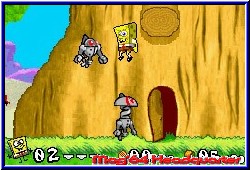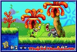Und wieder tritt auf dem GBA ein alter Bekannter aus der Trickfilmszene in Aktion. Spongebob Schwammkopf, der ja mittlerweile unter jüngeren und teilweise auch älteren Trickfilm Fans fast schon Kultstatus erreicht hat. Wie immer wieder bei größer werdendem Erfolg solcher Serien nehmen danach auch die spielerischen Umsetzungen zu. Mittlerweile schon zum zweiten mal auf dem GBA vertreten, werden ja auch andere Plattformen mit einer Fortsetzung bedacht. Allerdings war der erste Teil für die Zielgruppe nicht mal das schlechteste Spiel. Was natürlich auch daran lag das mit Vicarious Visions kein Unbekannter für das Spiel verwantwortlich war. Auch hier sind die Crash Bandicoot Schöpfer wieder dafür verantwortlich und man durfte gespannt sein was uns diesmal erwartet. Hintergrund des zweiten Teils ist der böse Plankton, der mal wieder seine finsteren Pläne durchsetzen will. Sein Ziel ist diesmal Bikini Bottom unter seine Fittiche zu bekommen und stellt dafür eine finstere Roboter Armee zusammen. Wie immer in solchen Geschichten geht dabei einiges schief und die Roboter machen sich selbsständig und breiten sich überall aus. Spongebob und seine Freunde können das natürlich nicht tolerieren und blasen zum Angriff auf die Robo Invasion. Hier steigt Ihr als Spieler ein und führt Spongebob und seine Freunde durch das Abenteuer. Im Gegensatz zum Vorgänger ist das Spiel nun komplett deutsch und dürfte in diesem Punkt auch den jüngsten Fans des Schwammkopfes entgegen kommen. Geblieben ist die Tatsache das erneut nur über Paßwörter der Fortschritt im Spiel gesichert werden kann. Das Hauptmenu gibt es so die Möglichkeit ein neues Spiel zu beginnen, ein Paßwort einzugeben und die Optionen zu besuchen, die euch Zugriff auf den Soundpart und die Credits geben. Startet Ihr ein neues Spiel erwartet euch der Kapitel Bildschirm. 4 Kapitel liegen vor dem Spieler, die in sich in einzelne Action Stages unterteilt sind und am Ende einen Endgegner bieten. Nacheinander müssen diese Stages gespielt werden, wobei es am Ende jeder Action Stage das Paßwort gibt. Nach einem bebilderten Vorspann werdet Ihr auch schon auf die Roboter losgelassen und das Spielprinzip zeigt sich. Auch Die Schlacht um Bikini Bottom ist wie der Vorgänger ein reinrassiger 2D Jumper in dem es gilt in den Action Stages kleine Ziele zu erfüllen. Diese definieren sich im Einsammeln wichtiger Items und der berühmt berüchtigten Krabbenburger. 20 pro Stage findbar kann man damit Bonuslevel im Racerstil freischalten in denen man ebenfalls von links nach rechts scrollend im Fahren weitere Krabbenburger einsammeln kann. Schafft man hier die volle Punktzahl kann man eines der zahlreichen Gallerie Bilder freischalten.
