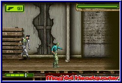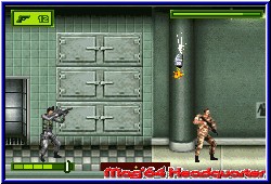 Denn vieles ist gleich geblieben, wobei natürlich auch neue Dinge Einzug gehalten haben. Ihr steuert Sam also von links nach rechts und zurück in der bekannten 2D Präsentation oder überwindet Höhen und Tiefen innerhalb der Location. An Grundtechniken darf der Spieler normal Laufen, per doppeltem drücken der Laufrichtung rennen oder duckend voran kommen. Dazu kommt ein Sprung mit der A-Taste was an Kanten und Vorsprüngen ein automatisches festhalten zu Folge hat. Ebenso könnt Ihr hangeln und euch wie ein Faultier an entsprechende Rohre hängen und so auch kleinste Lücken durchqueren. Die L-Taste dient dem Spieler dazu die sogenannte Haftkamera zu benutzen. Einmal gedrückt kann man nach allen Seiten recht weit schauen und erkennt so z.b. Kameras an den Wänden und deren Einzugsbereich beim Suchen. Ebenso kann man sich so auf eventuelle Gegner einstellen. Links oben besitzt der Spieler seine Ausrüstung in Sachen Waffen und Dingen wie Granaten. Per Select schaltet man zwischen den verfügbaren durch und wählt sie mit der R-Taste an um sie per B-Taste zu benutzen. Dazu gehören neben dem Sniper Gewehr, einer Pistole auch die Granaten. Vor allem der Einsatz der Blendgranaten macht sich im zweiten Teil sehr gut. Die Pistole ist eher Beiwerk und sollte nicht als Hauptmittel angesehen werden. Denn man leidet eigentlich das ganze Spiel hindurch an Munitions Knappheit. Das Augenmerk liegt ja auch hier auf dem Schleichen, wobei in vielen Missionen das Benutzen der Waffen zum sofortigen Missionsabbruch führt. Nur so kommt man im Großteil des Spiels voran. Nähert man sich z.b. einem Gegner füllt sich unten rechts eine Risiko Anzeige. Ein ähnliches System wie im Vorgänger zeigt euch an wie unerkannt Ihr noch seid. Steht Ihr z.b. hinter einem Gegner ohne das dieser euch entdeckt hat kann man diesen per B-Taste mit einem Handkantenschlag außer Gefecht setzen. Die häufigste Methode sich der Gegner zu entledigen. Hier gibt es nun etwas neues. Konnte man im Vorgänger den Gegner nur umhauen greift ihn sich Sam jetzt und man führt ihn wie eine Geisel durch die Gegend. Hintergrund sind gleich 2 Dinge. Zum einen gibt es Terminals, die nur die Wachen öffnen können. Ihr zwingt diesen also mit dieser Aktion diese zu benutzen und haut ihn dann um. Dazu kommt das wieder enthaltene Kamera System. Haut Ihr einen Gegner um und die Überwachungs Kamera entdeckt diesen Körper gibt's Alarm. Also zieht man den Gegner gleich aus dem Einzugsbereich. Oder aber er liegt am Boden. Auch dann kann Sam jetzt per B-Taste die Leiche nach allen Seiten ziehen. Dabei sollte rechts oben die Energieleiste des guten Sam immer unter Beobachtung sein. Denn Unverwundbar ist auch Sam Fisher nicht. All diese Aktionen die der Spieler vollführen kann sind sehr gut umgesetzt.